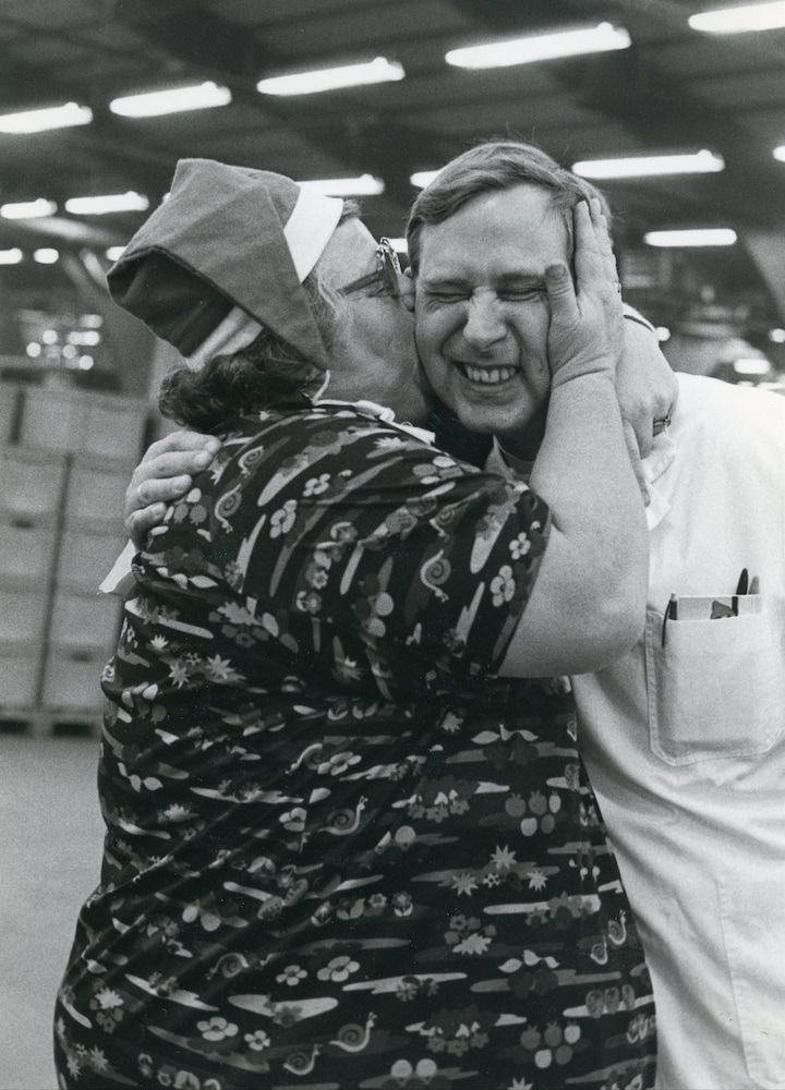 Flere tidligere ansatte husker ikke mindst også festerne, hvor der angiveligt – som det kan ses på billedet herover – altid var højt humør.
