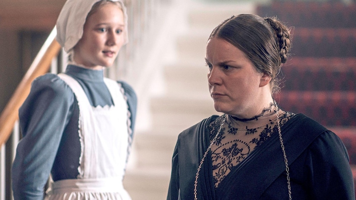 Her spiller hun oldfruen Miriam, der med vold og magt forsøger at holde det rige herskab adskilt fra tjenestefolkene.