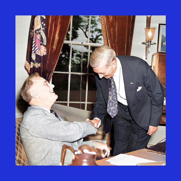 Dermed er han med til at sikre, at USA og de allierede – herunder Danmark – kan trække sig sejrrigt ud af Anden Verdenskrig i 1945.