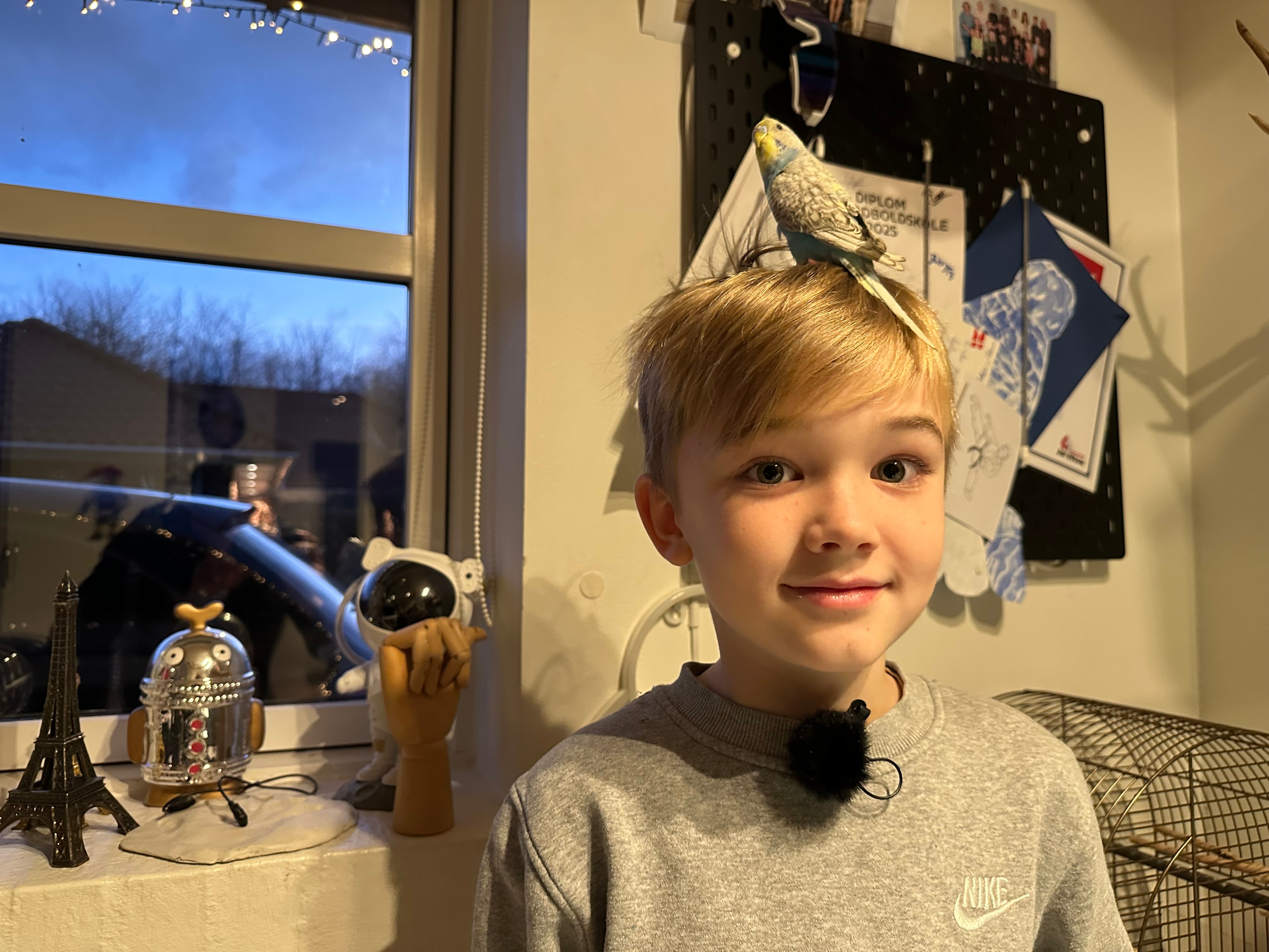 William Meyer med sin nye undulat, Chili (Foto: © David Wennemoes Carlsen, DR)