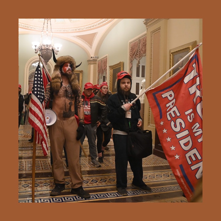 Med bisonhat på hovedet og spyd i hånden stod amerikanske Jake Angeli i front for de mere end 2000 Donald Trump-tilhængere, der den 6. januar 2021 brød politiafspæringer for at trænge ind i Kongressen i Washington.