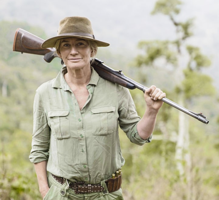 Det ændrer dog ikke på, at hun nu har boet i Tanzania i 28 år og er blevet en anerkendt jæger, naturbevarer, forfatter - og mor.