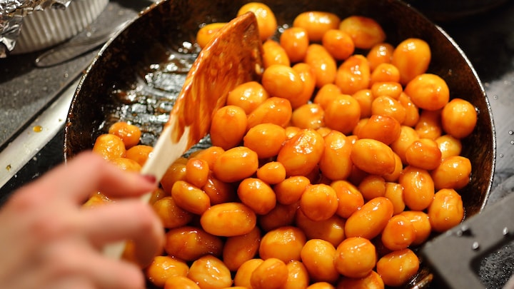 Her kan du koge og pille dem og dernæst stille dem koldt, til de skal varmes op i sukker og smør, lige inden julemiddagen skal på bordet.