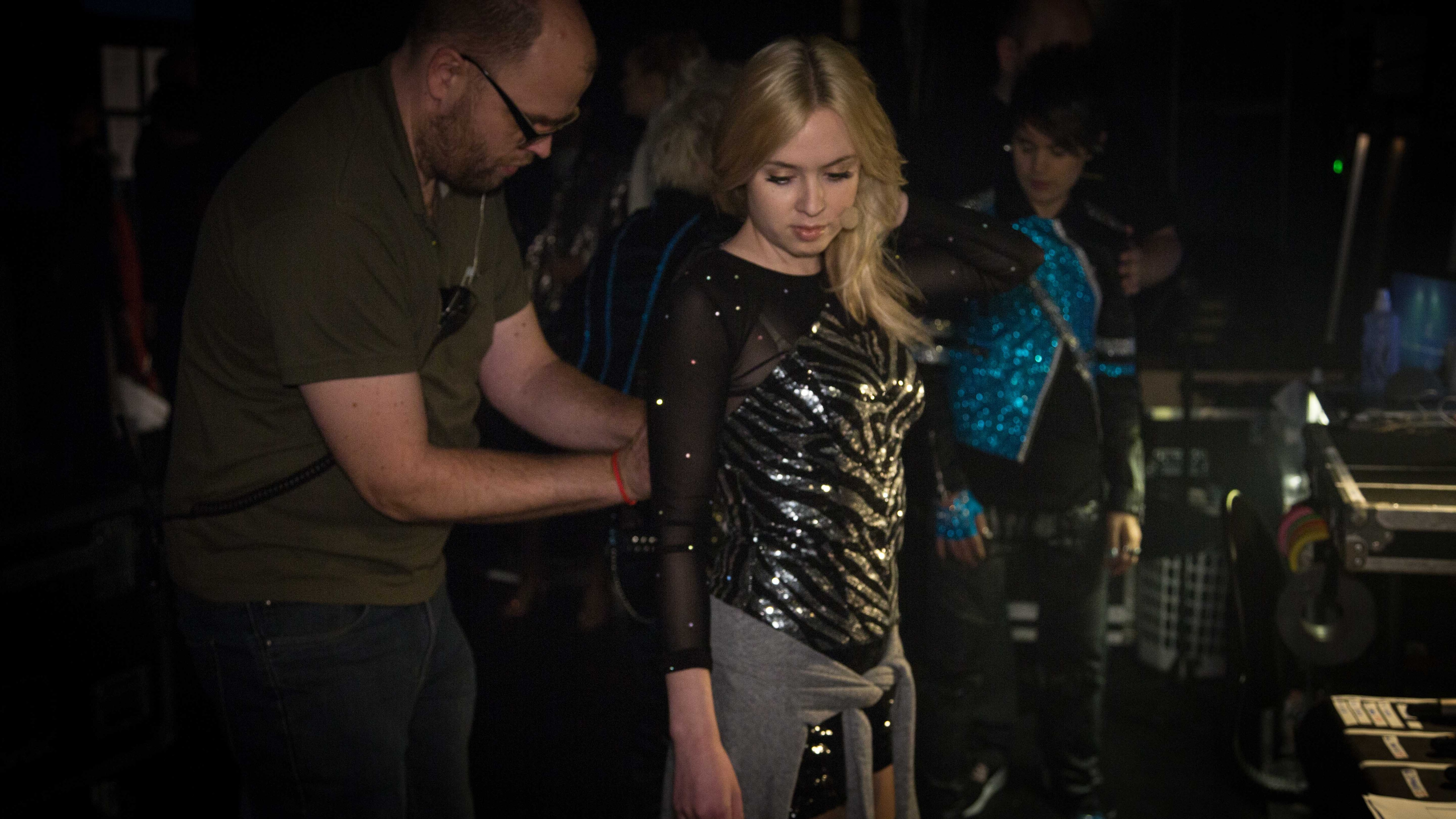 Her er det Simone, der står sammen med en af danserne. (Foto: © Frederik Højfelt Nielsen, DR)