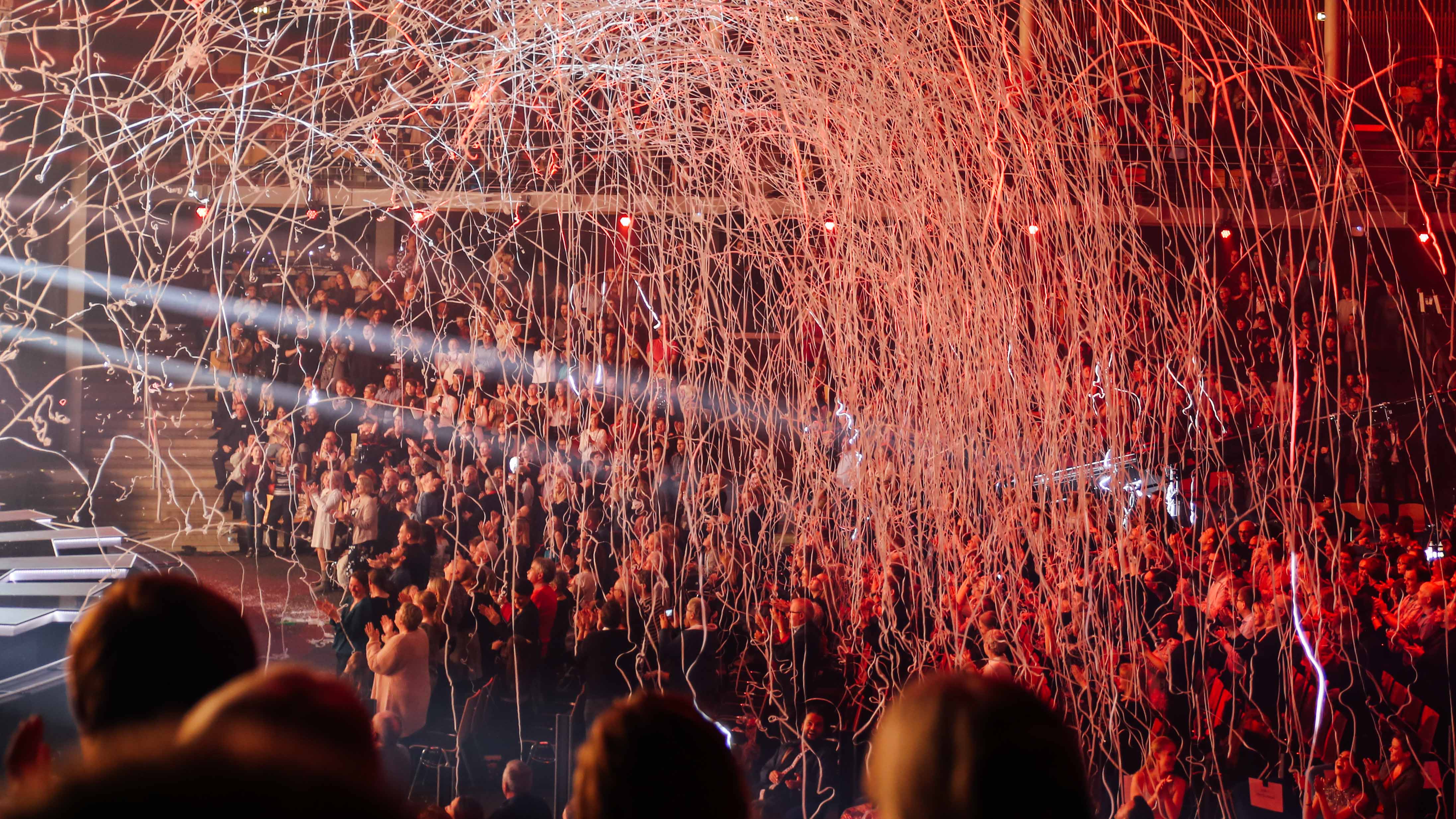Det regnede med konfetti-strimler ud over Grand Prix-publikummet (Foto: © Frederik Højfelt Nielsen, DR)