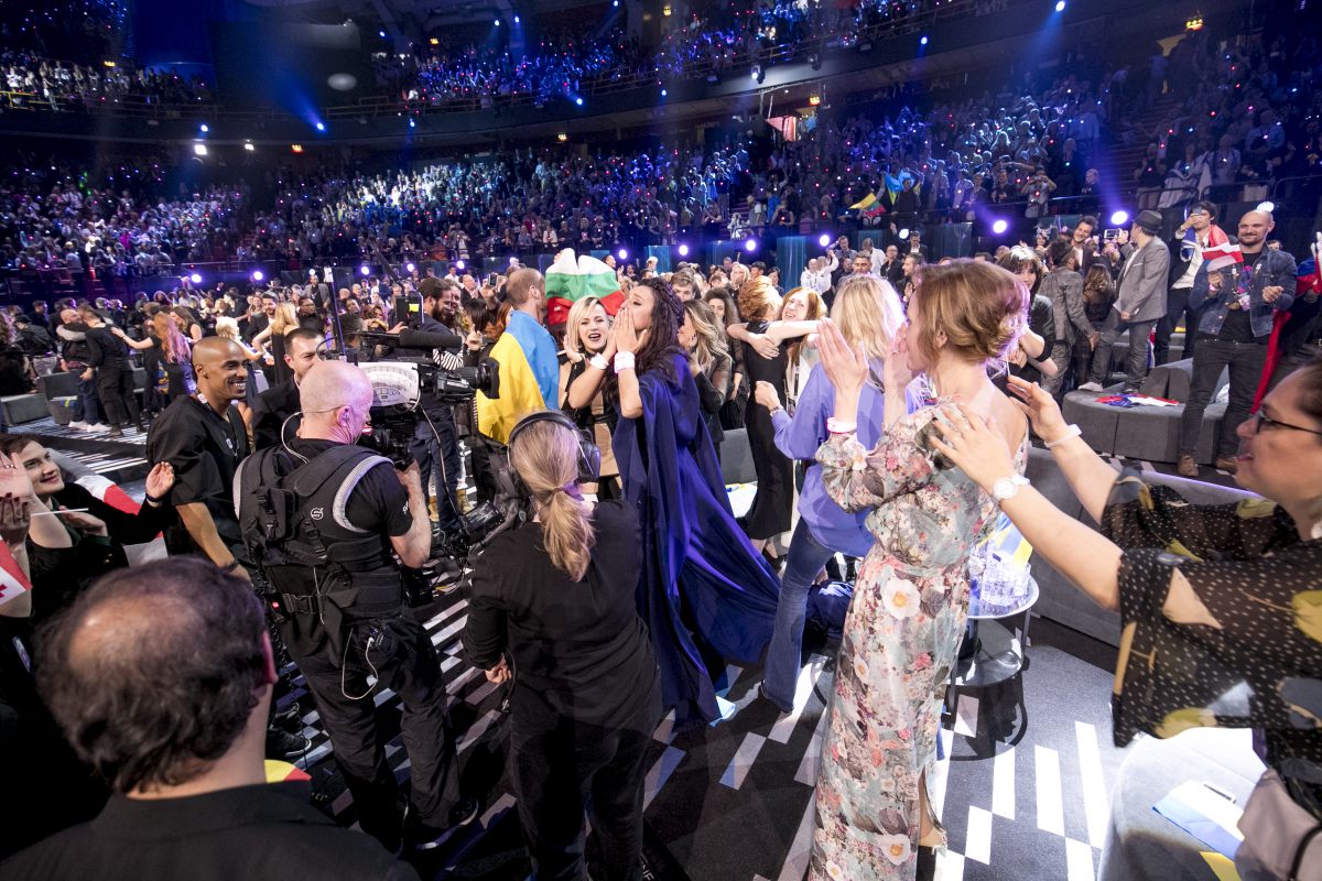 Eufori i green room efter Jamalas sejr. (© eurovision.tv)
