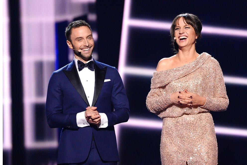 Årets Eurovision-værter Måns Zelmerlöw og Petra Mede. (Foto: © Jonathan Nackstrand, Scanpix)