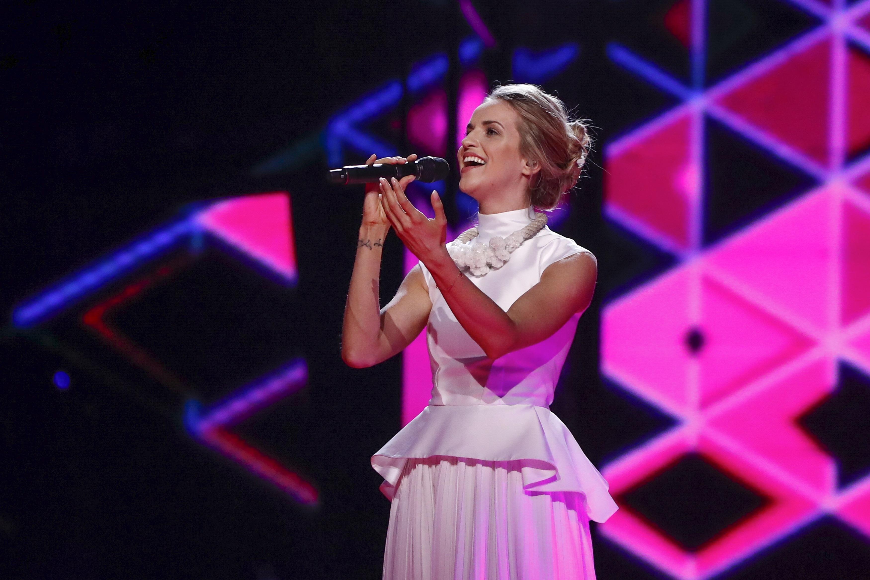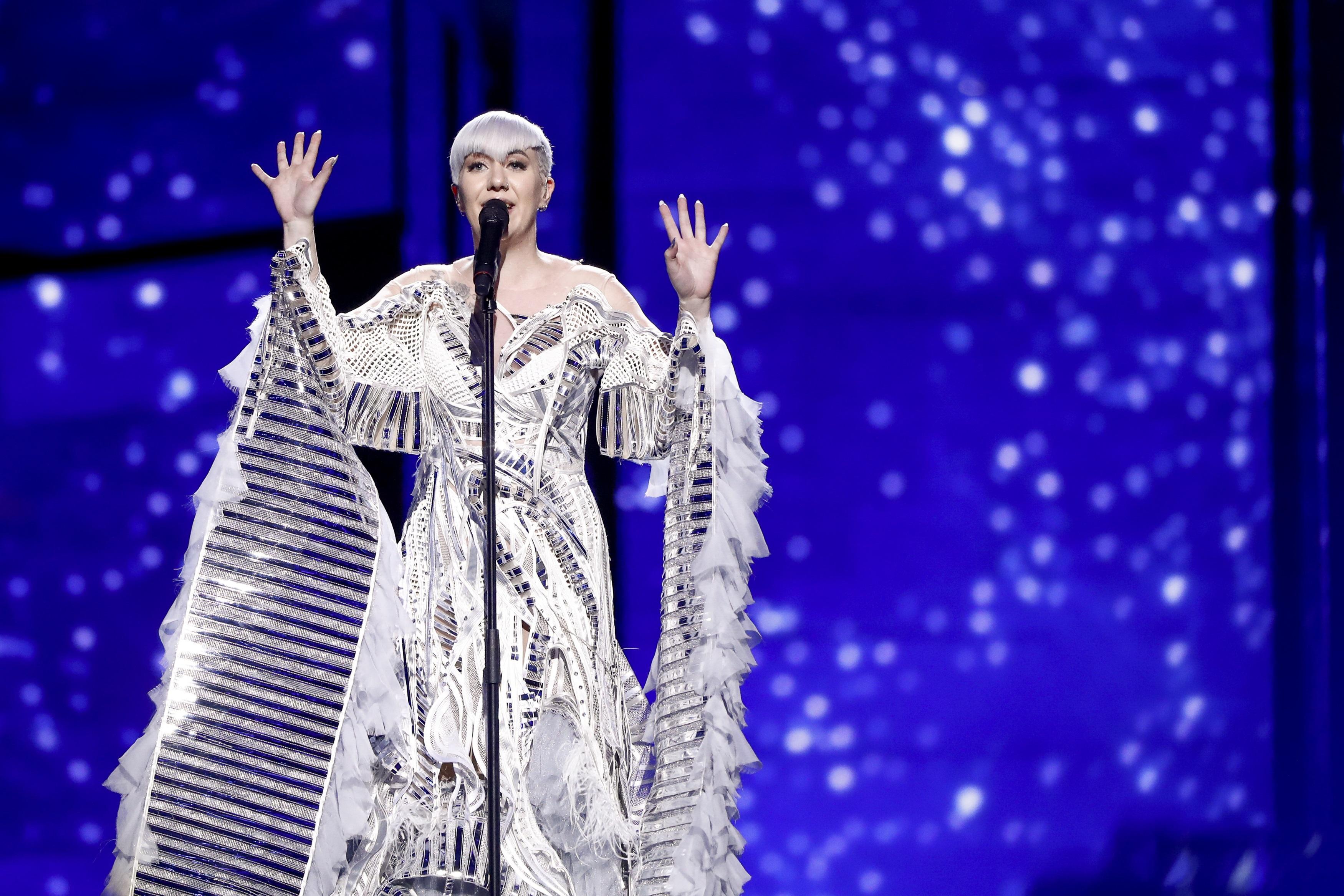 Der var fat i de store følelser, da serbiske Sanja Vucic ZAA gik på scenen med nummeret 'Goodbye', der handler om kærestevold. (© eurovision.tv)