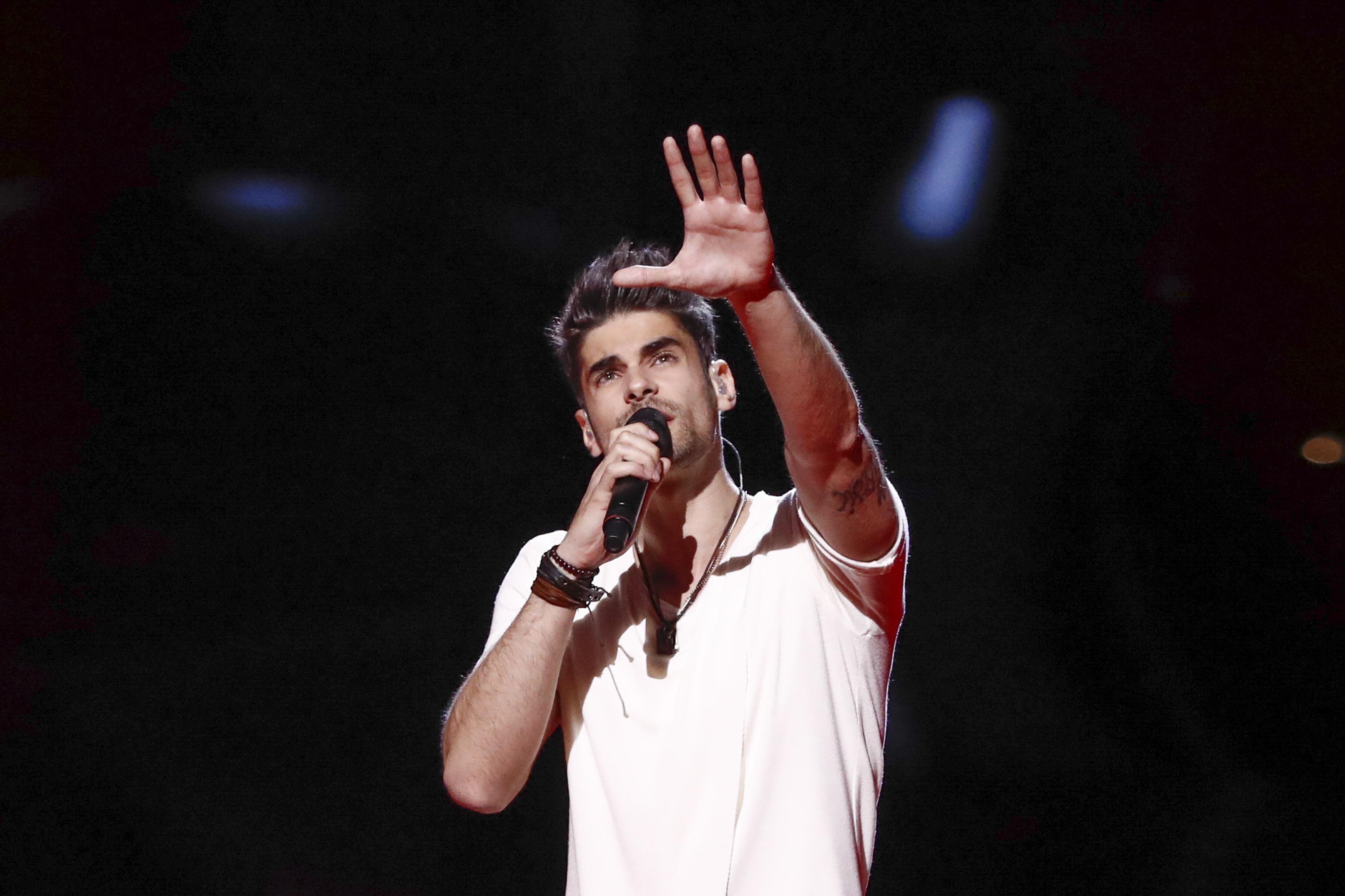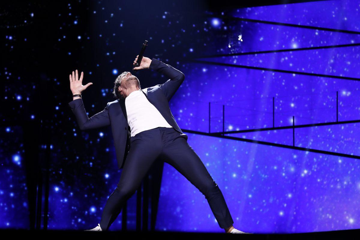 Donny Montell var flyvende, da han sang 'I've Been Waiting For Tonight' før Litauen. (© eurovision.tv)