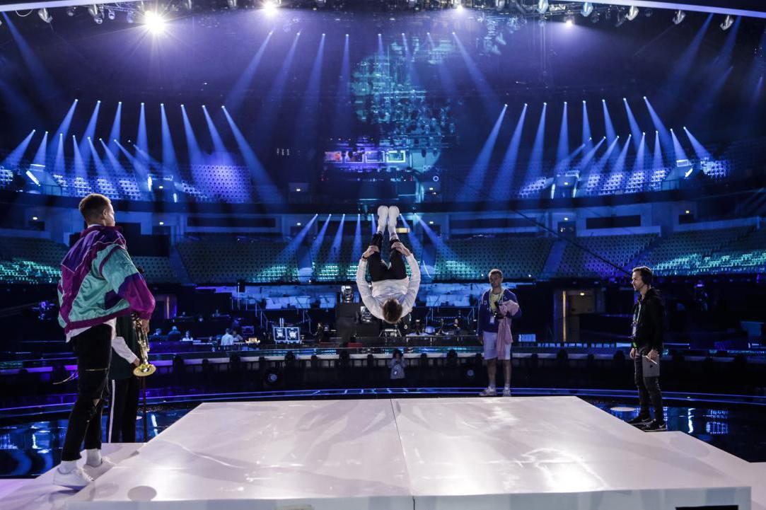 Som det fremgår af billederne fra søndagens prøver herunder, er Mikolas Josefs optræden energisk og fuld af dans og akrobatik, så om den unge tjekke overhovedet når at blive klar til at hoppe rundt på scenen i næste uge, er endnu uvist.