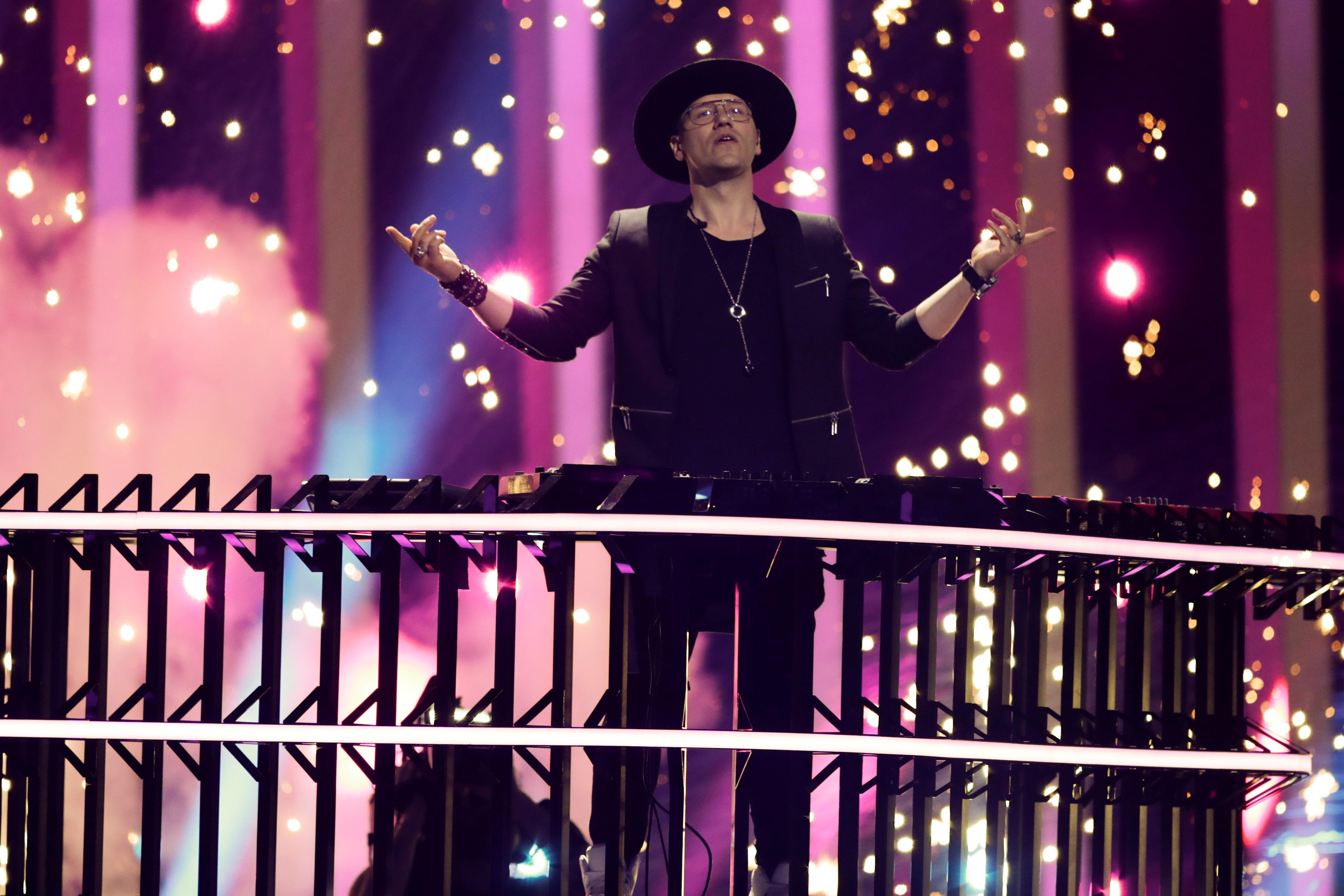 Ukraine stillede op med en flammende fyr i form af Melovin, der brændte scenen ned, med sit pyroshow, da han lukkede semifinalen med sin vilde optræden med sangen 'Under The Ladder'.