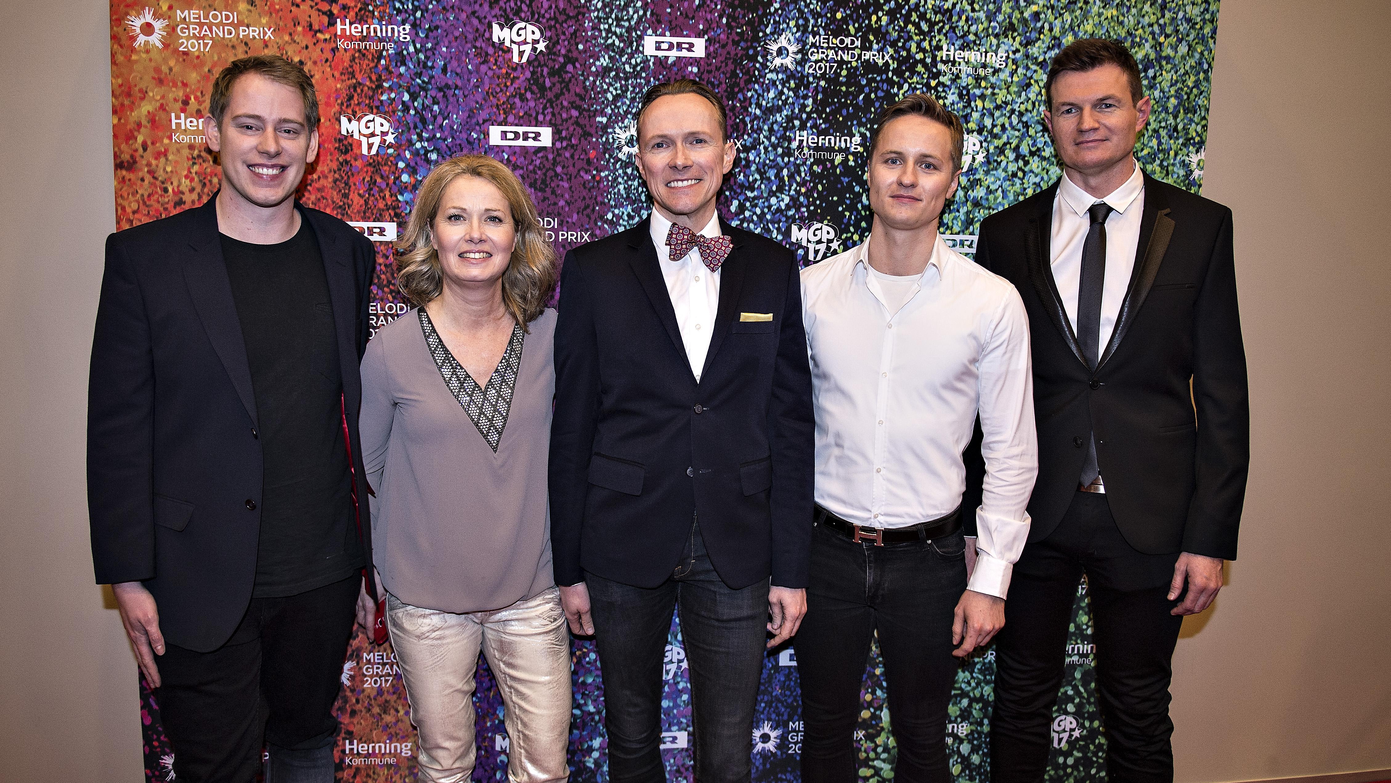 Som noget nyt er der i år en fagjury af 'superfans', der skal være med til at kåre aftenens vinder. Juryen består af Mogens Dalsgaard Myklebust, Mette Thorning Svendsen, Peter Hansen, Morten Kaiser og Søren Toft. (Foto: © Henning Bagger, Scanpix)
