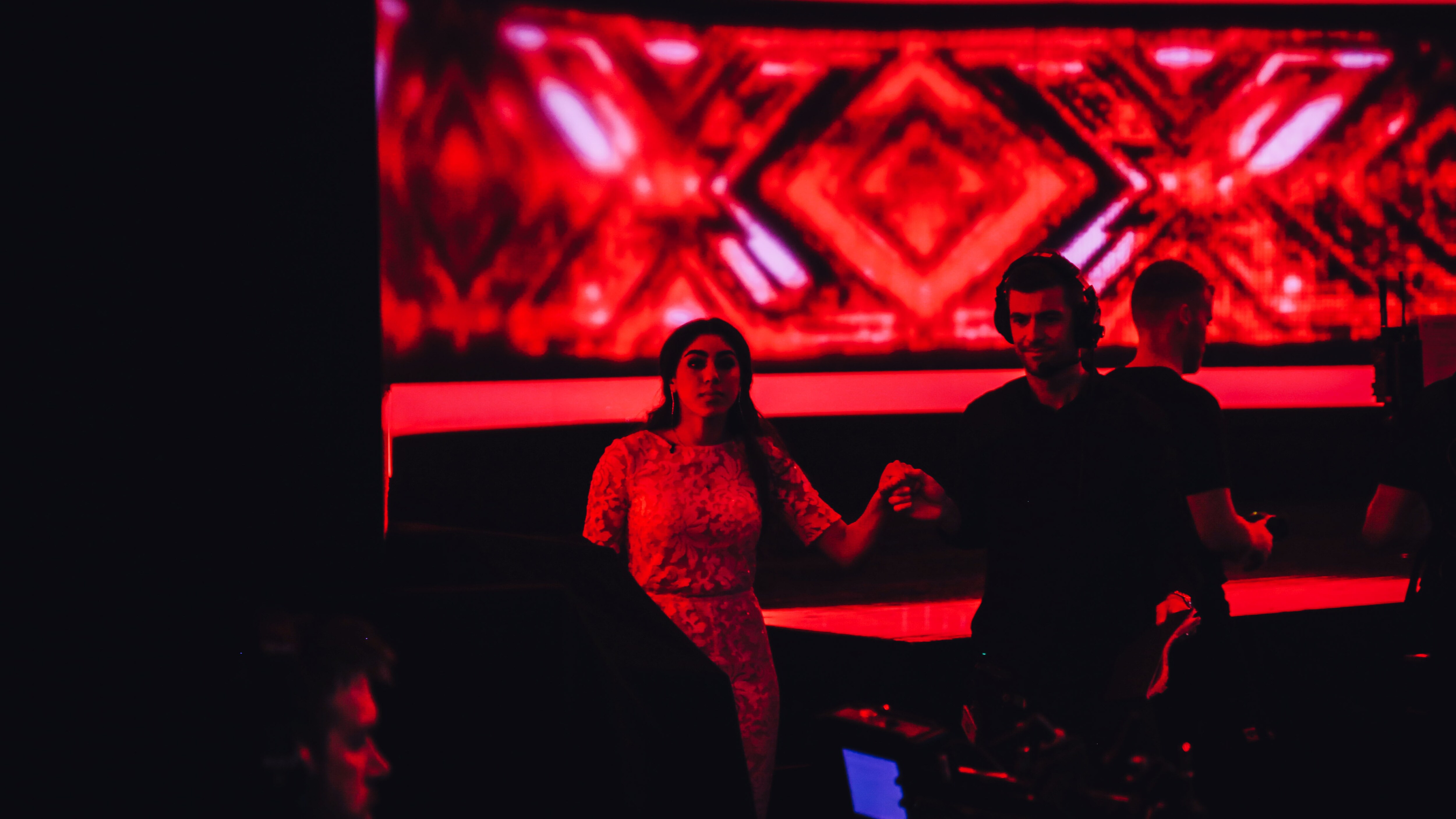 Reem hjælpes på scenen. (Foto: © Frederik Højfeldt Nielsen, DR)