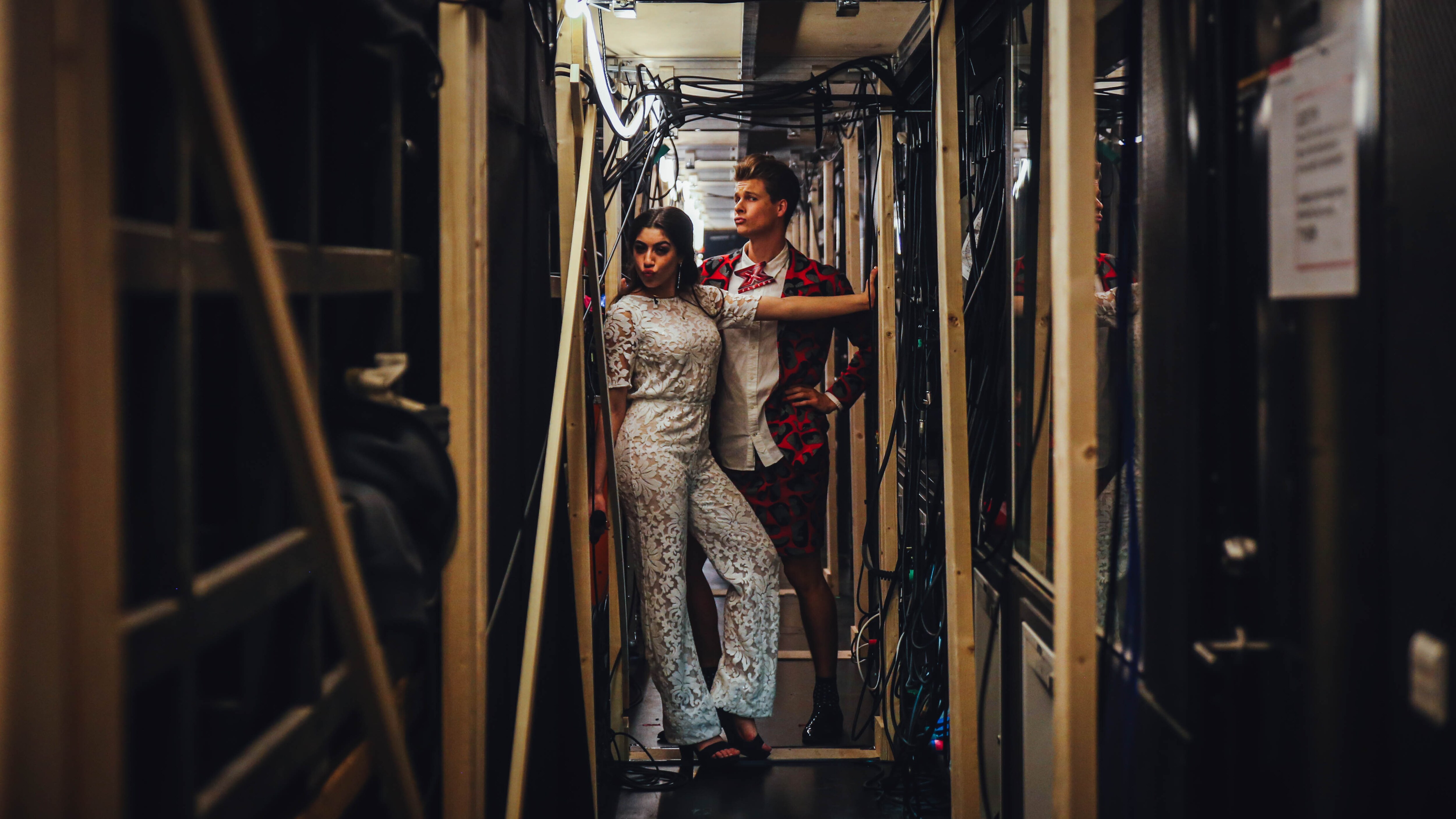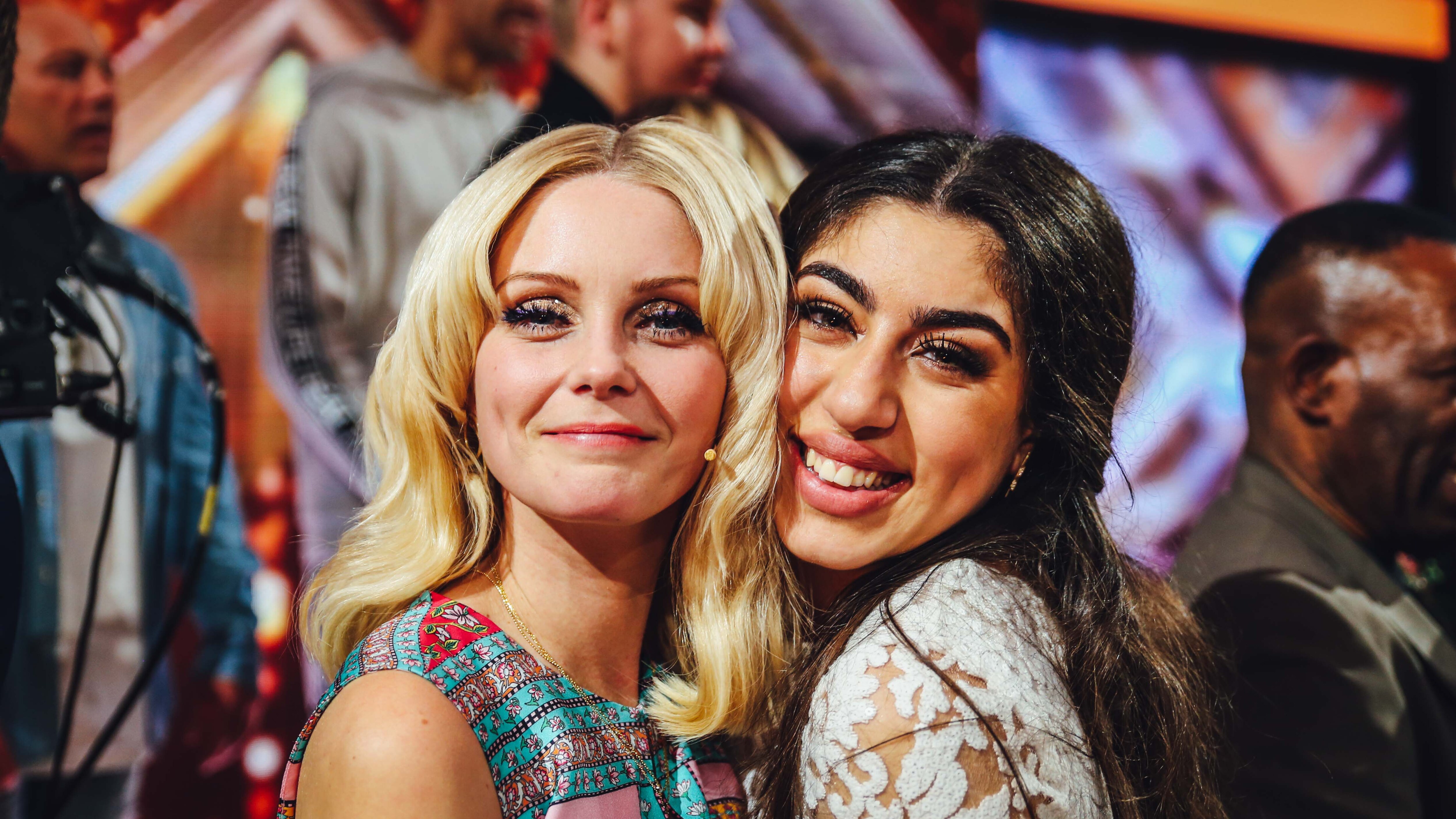 Reem og X Factors snapchatvært Rasmus Kolbe inden Reems optræden. (Foto: © Frederik Højfeldt Nielsen, DR)