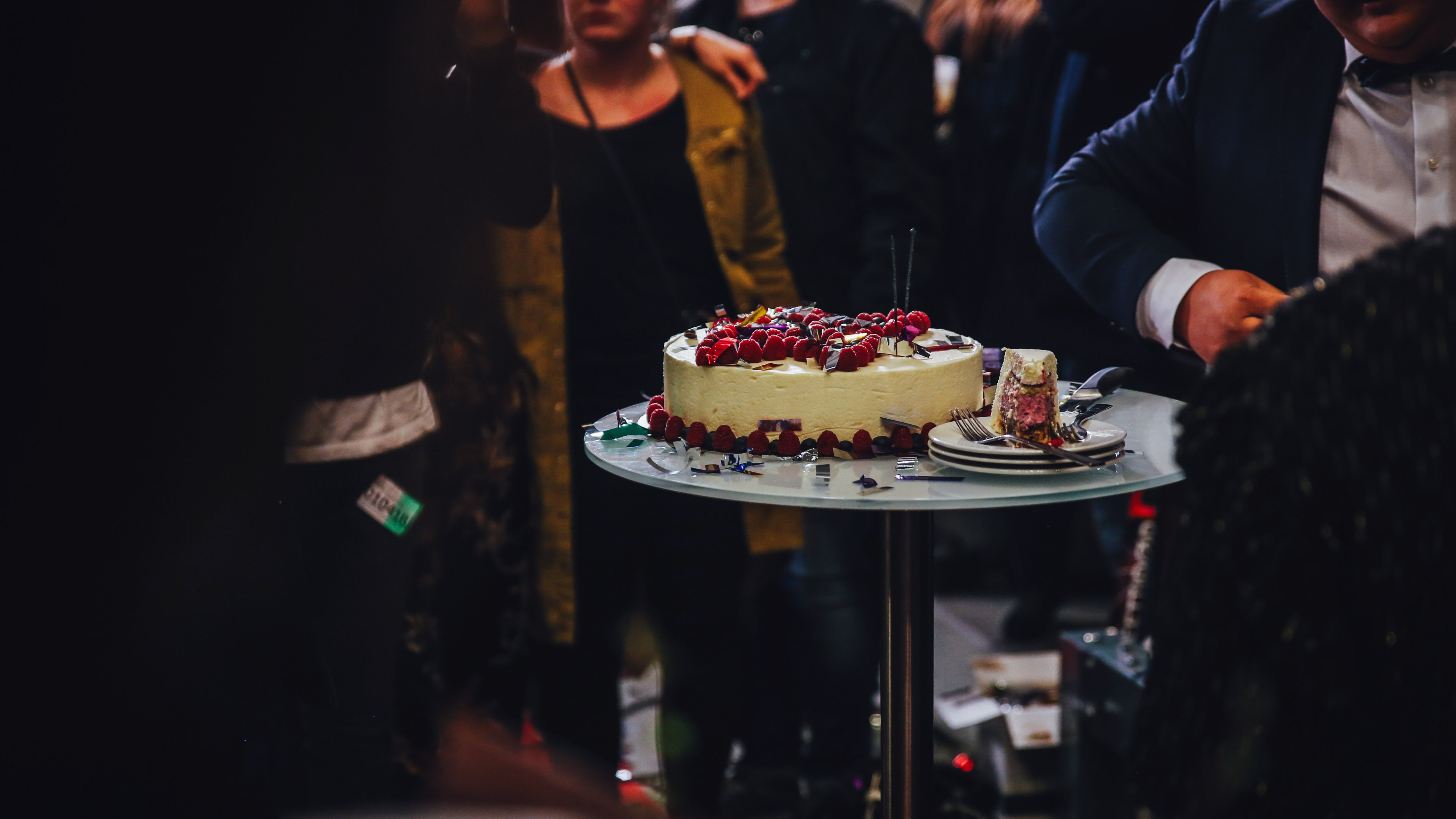 Micki Cheng fra Den store bagedyst har været fast medvært i backstageprogrammet Ultra Factor - og selvfølgelig havde han bagt en X Factor-kage i anledning af finalen. (Foto: © Frederik Højfeldt Nielsen, DR)