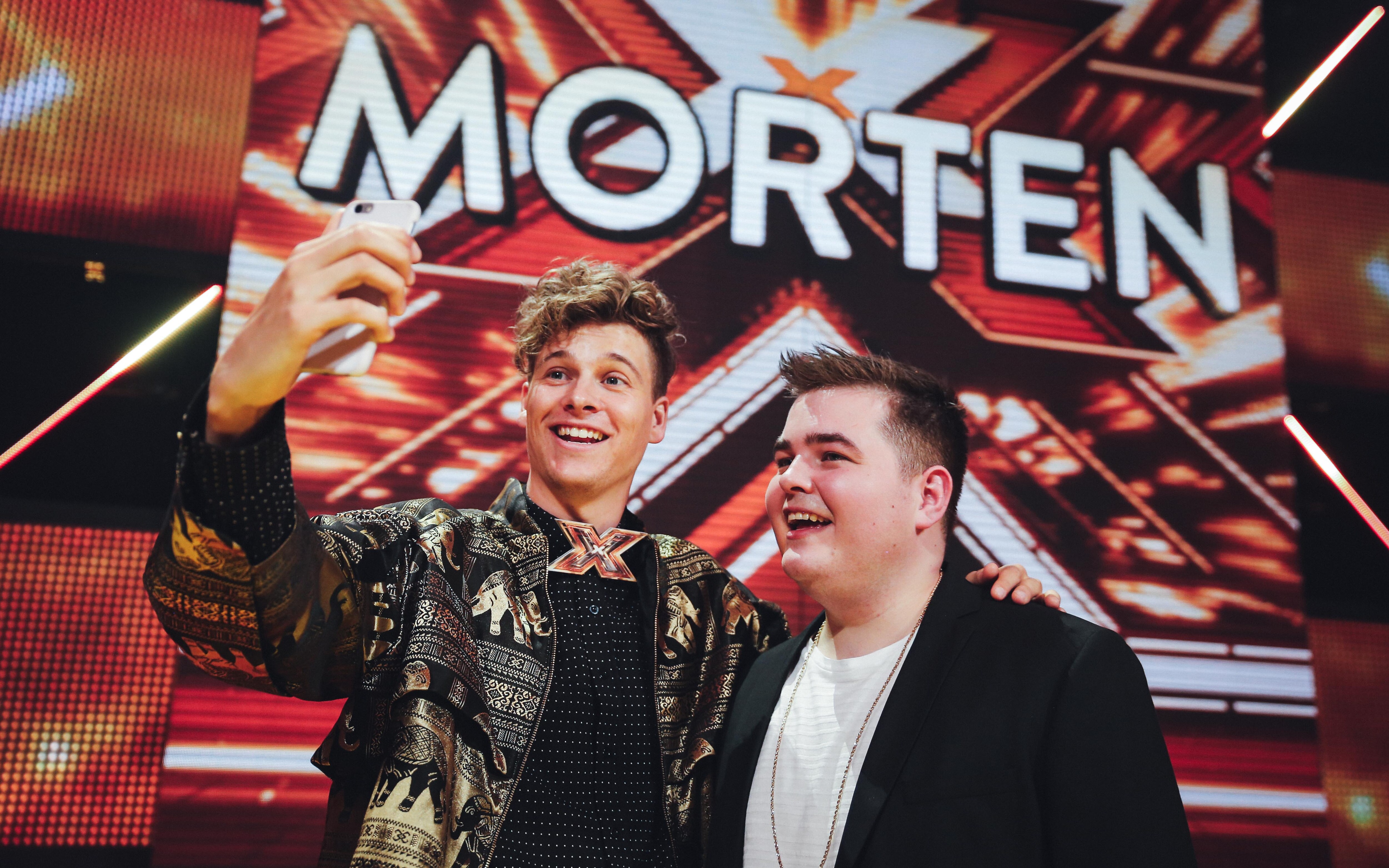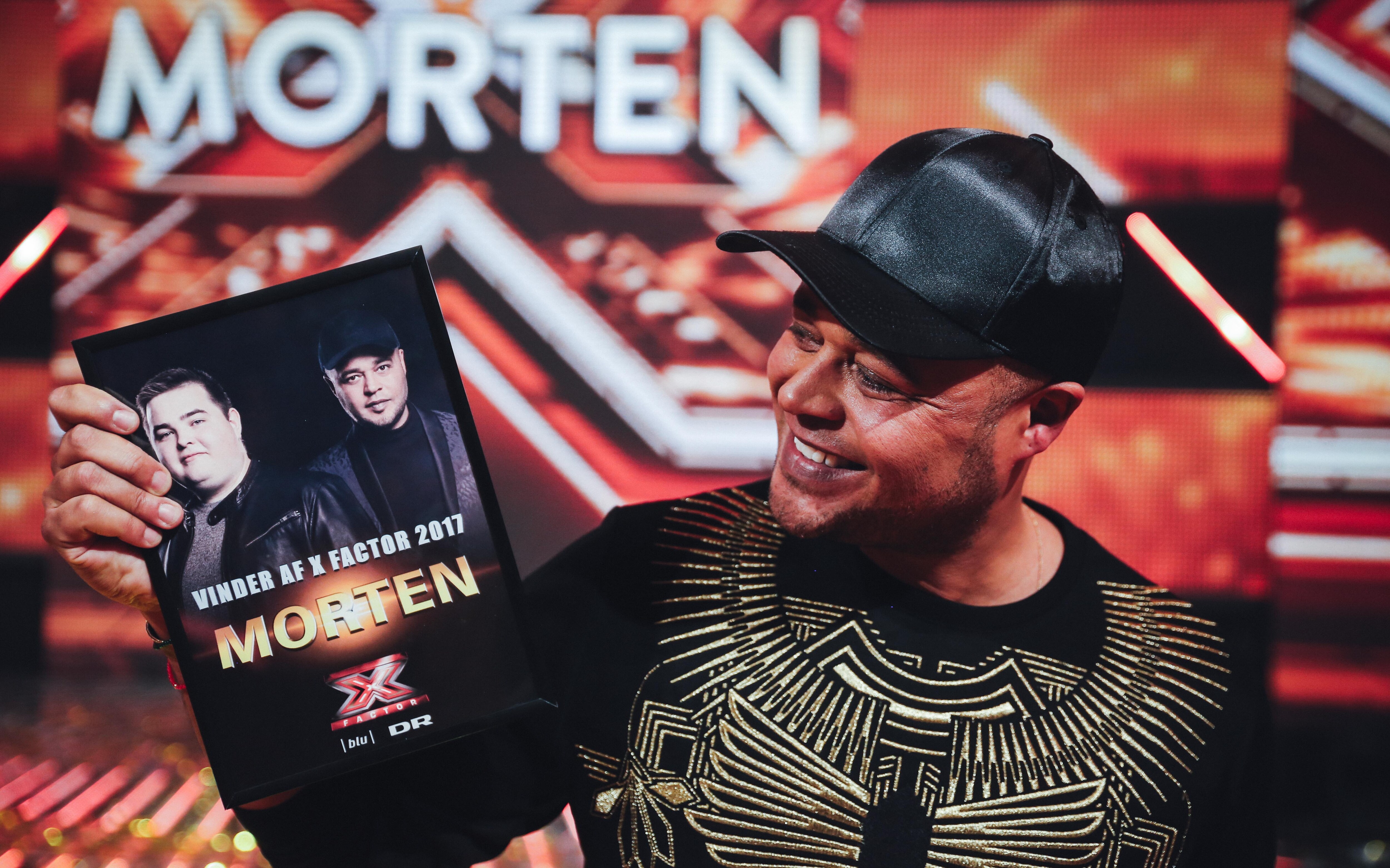 Morten sammen med Lakserytteren efter sin sejr i X Factor. (Foto: © Frederik Højfeldt, (c) DR)