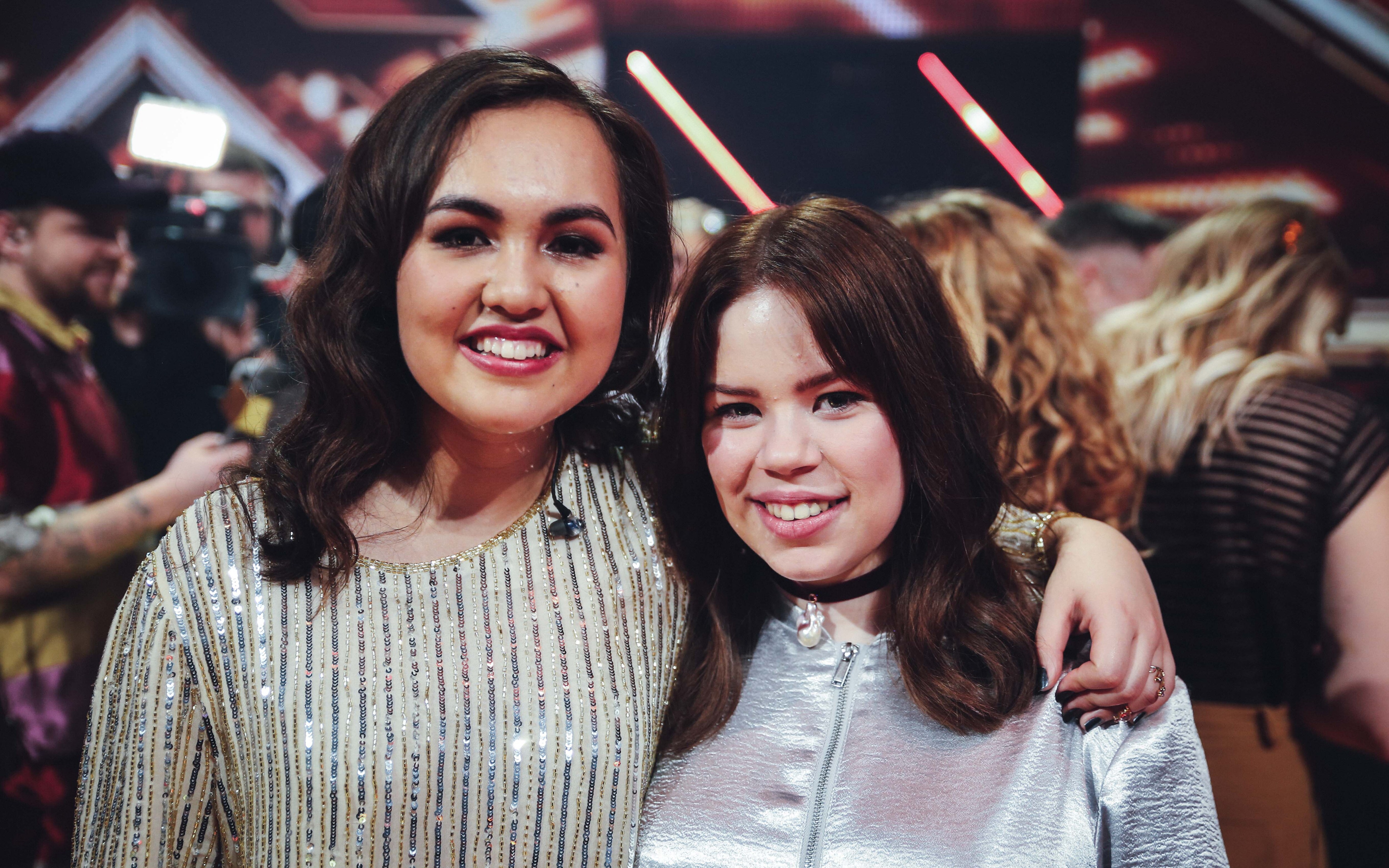 Mia og Chili efter finalen i X Factor 2017. Chili endte på andenpladsen, mens Mia fik tredjepladsen. (Foto: © Frederik Højfeldt, (c) DR)