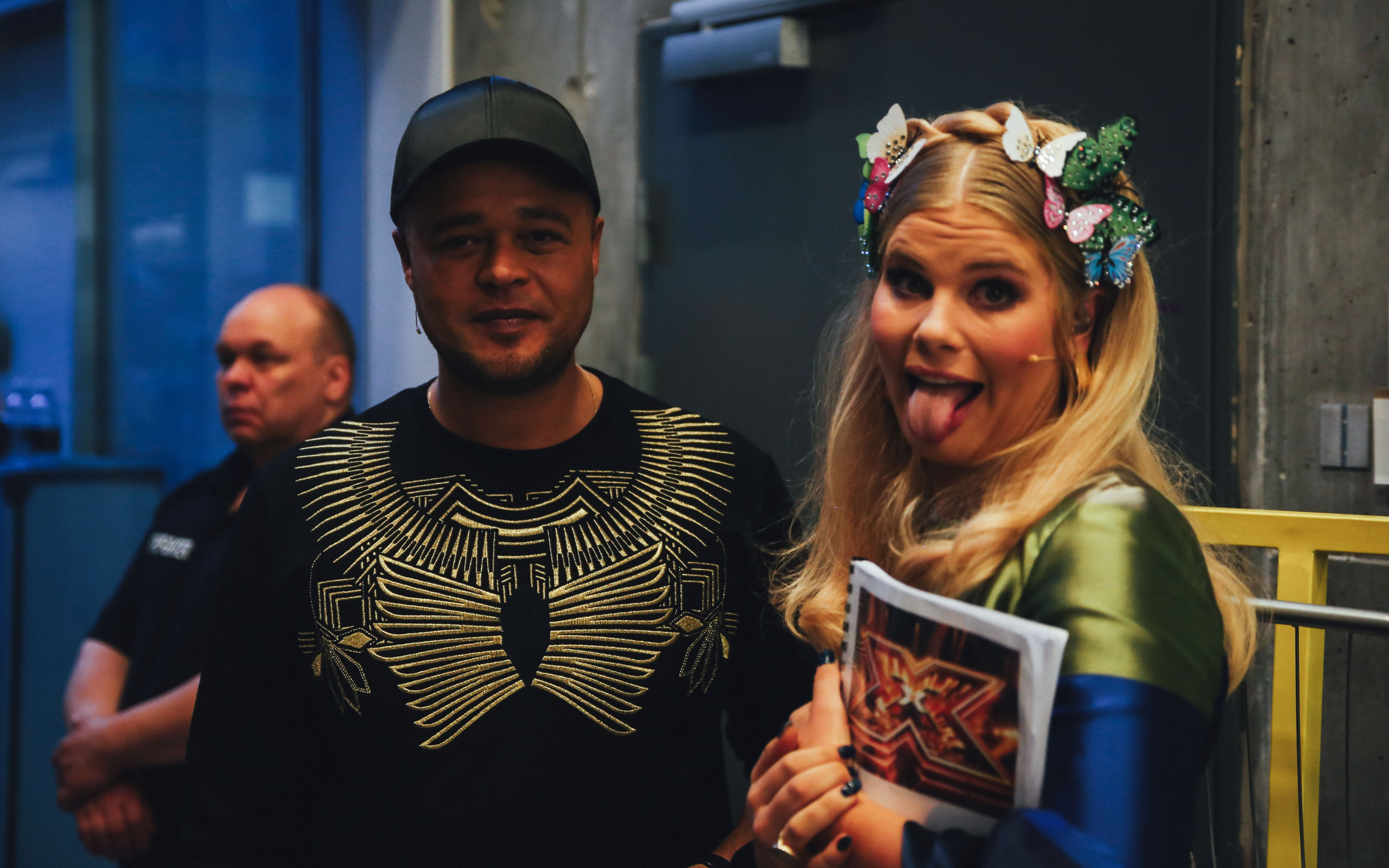 Værtinde Sofie Linde backstage med dommer, Remee. (Foto: © Frederik Højfeldt, (c) DR)