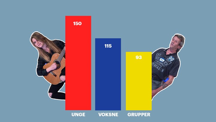 Sagt på en anden måde: En ung deltager kommer i gennemsnit gennem 6,25 afstemningsrunder, en voksen får lov at være med i 4,79 runder, mens en gruppe synger sig gennem 3,86 runder.