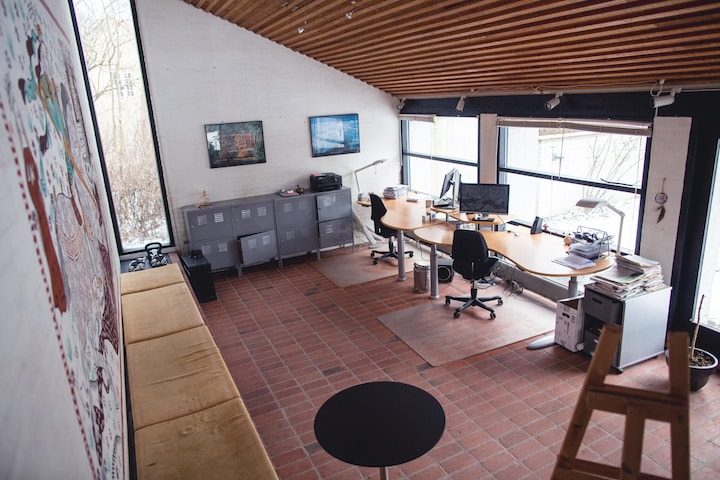 Husets arbejdsværelse har stået øde hen på det seneste. Anne Mette og Tomas driver til hverdag deres eget e-lærings-firma hjemme fra privaten.