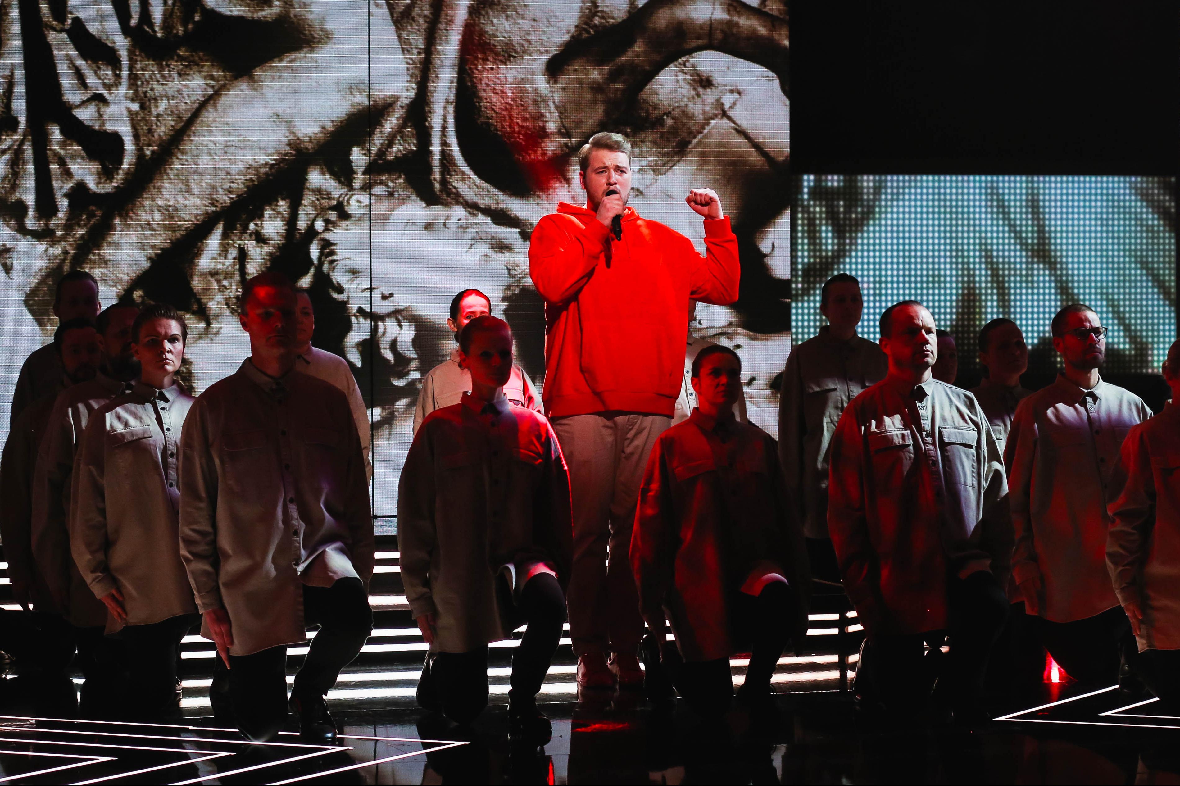 Rasmus prædikede medmenneskelighed, da han og et medbragt gospelkor kanaliserede store følelser og stor vokal med en dramatisk udgave af 'Glory', der oprindeligt er af Common og John Legend.