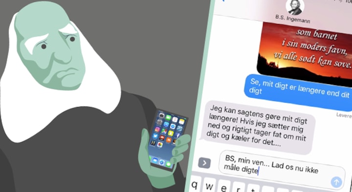 Se med i videoen herunder, hvor salmedigteren N.F.S. Grundtvig brokker sig over Dr.dk's clickbait - og sender 'digt-pics' via iMessage.