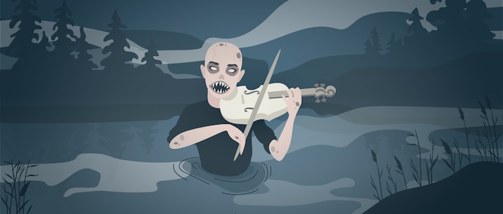Sker det et år, at han ikke får sit offer, så tager han året efter to. Andre gange lokker han et menneske til sig med sit smukke violinspil.