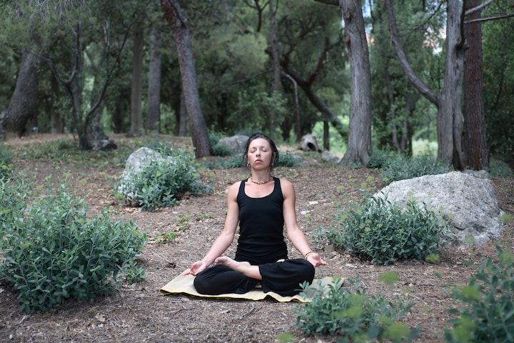 I skyggen under dem er yogamåtter bredt ud på jorden, og stilheden bliver kun brudt, når cikaderne begynder at larme.
