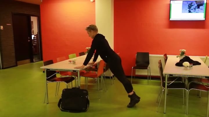 Bemærk: I hverdagsmotion skal man som i fitnesscenteret starte gradvist med lavere højder (step op), lavere belastning og et moderat antal gentagelser, 10-15 repetitioner med overskud til 2-5 ekstra gentagelser, og få serier, 1-2. Start på en nem, sikker måde og skab et godt fundament.