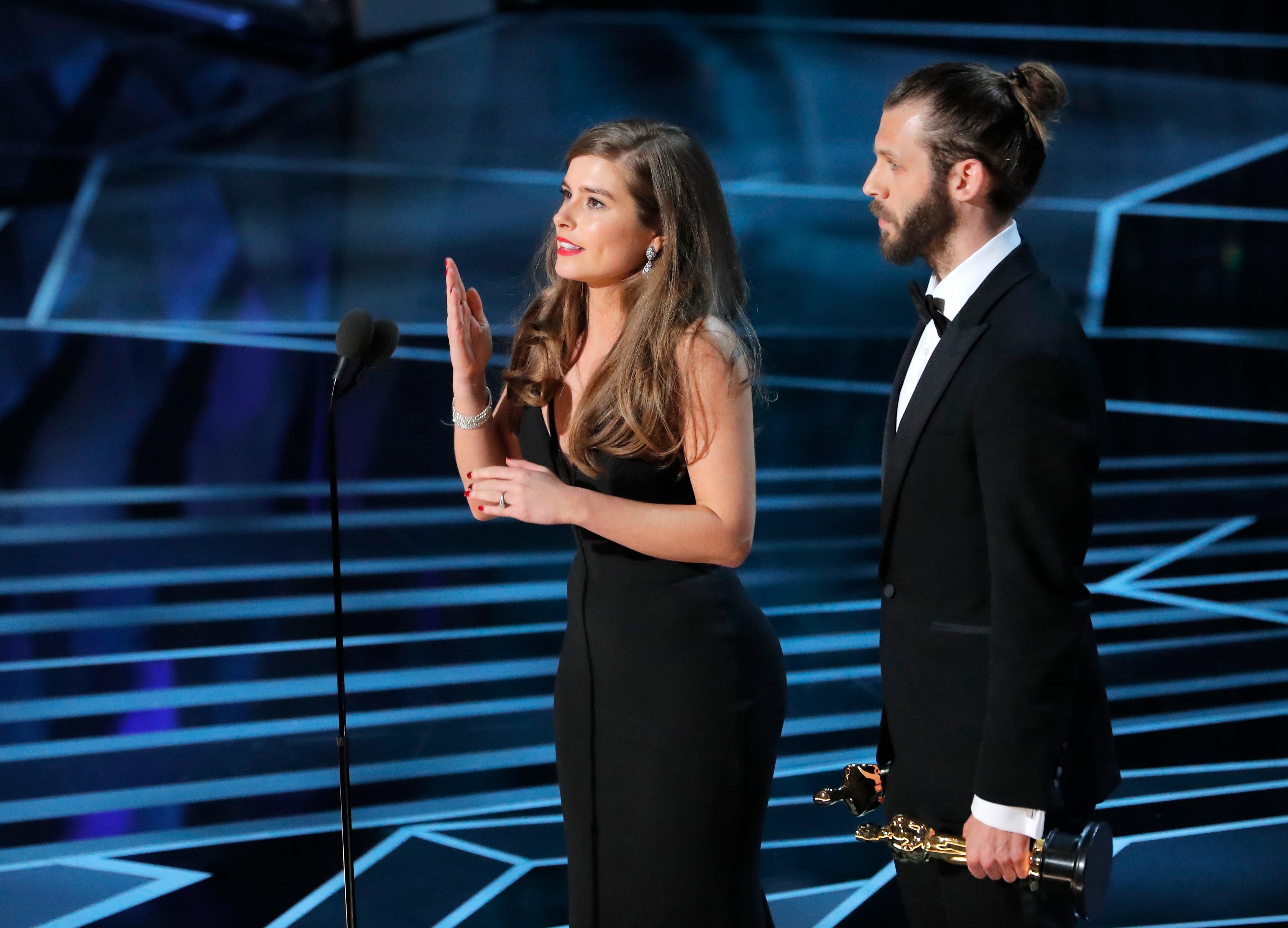 Oscar-uddelingen foregik i Dolby Theatre i Los Angeles, hvor berømte skuespillere og filmfolk var samlet.