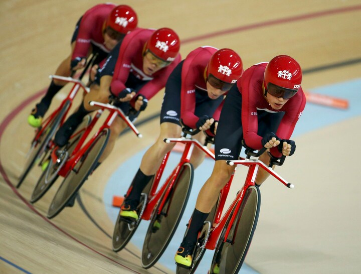 De danske hold bestod af Lasse Norman Hansen, Rasmus Lund, Frederik Rodenberg og Julius Johansen. De kørte de 4000 meter på tre minutter og 49,113 sekunder.