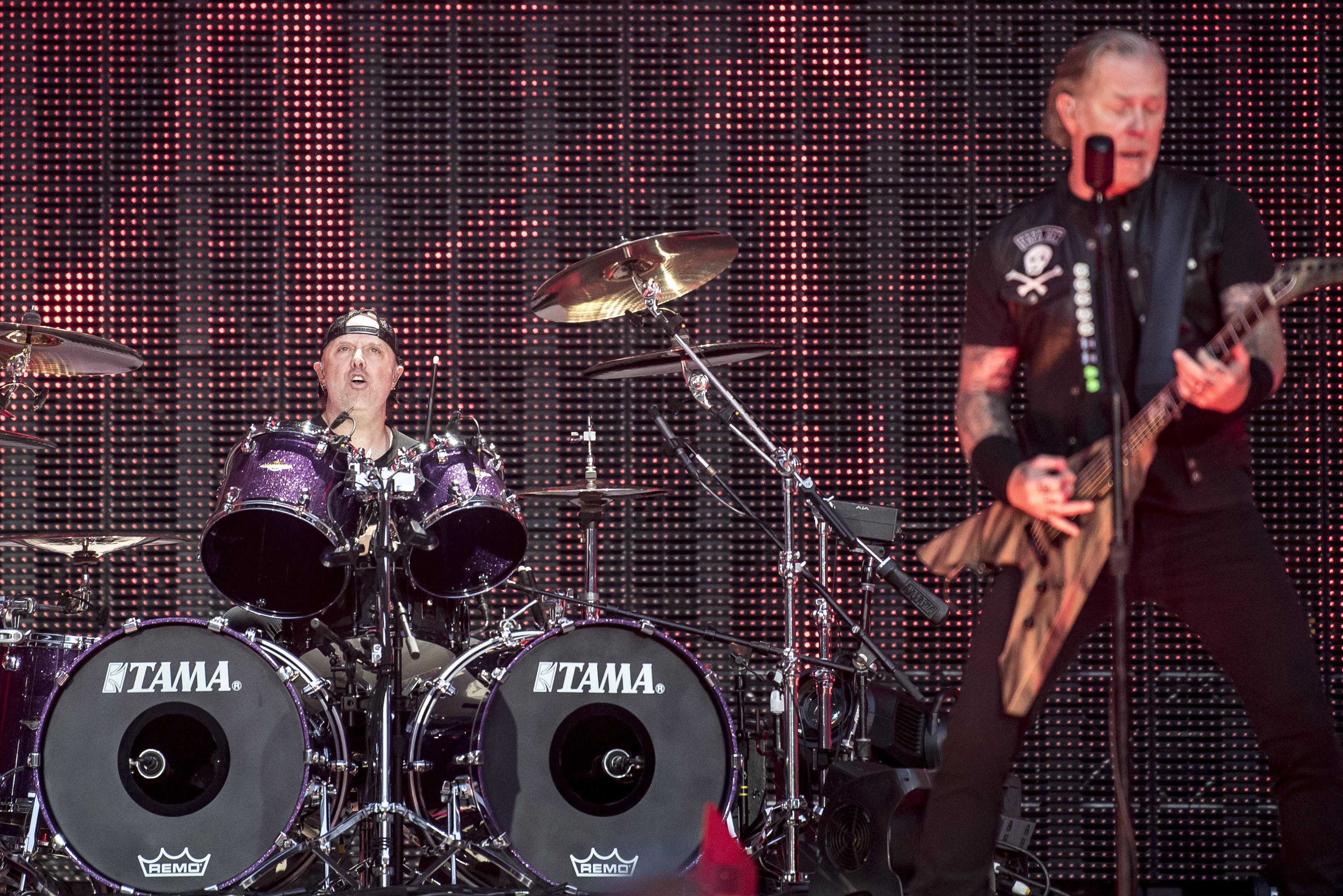 NUMMER 10: Velkommen til top 10, hvor vi lægger ud med metalbandet Metallica, der har tjent 68,5 millioner dollar (464 millioner kroner) i år. Bandet har blandt andet været på en lang turné, der sendte danske Lars Ulrich og de tre andre bandmedlemmer forbi Parken i København. (Foto: © Mads Claus Rasmussen, Scanpix)