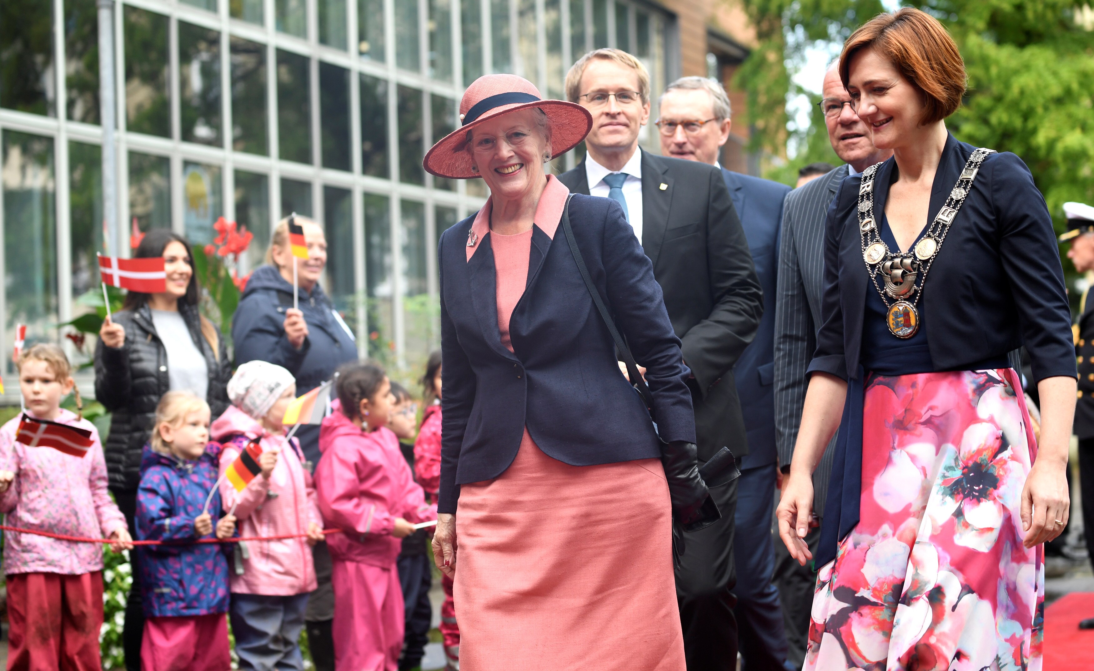 Ifølge Clemens Teschendorf handler det dog også om geografi. Jo, tættere på den danske grænse, dronning Margrethe kommer, jo flere danske flag er der på grund af det store danske mindretal.
