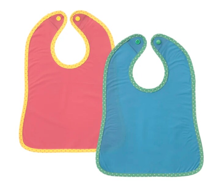 Det drejer sig om hagesmækken Matvrå i rød og blå. Ikea har fået to meldinger om, at knappen på hagesmækken er faldet af.