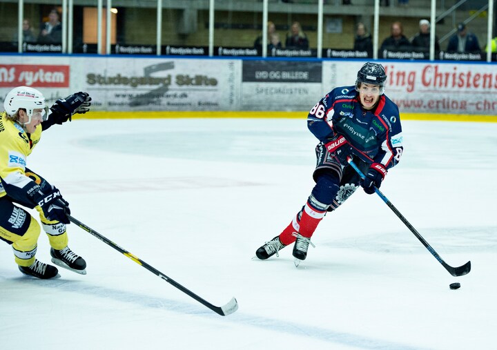 Kristian Jensen spiller ishockey for Frederikshavn. I september spillede han mod et hold fra Odense.