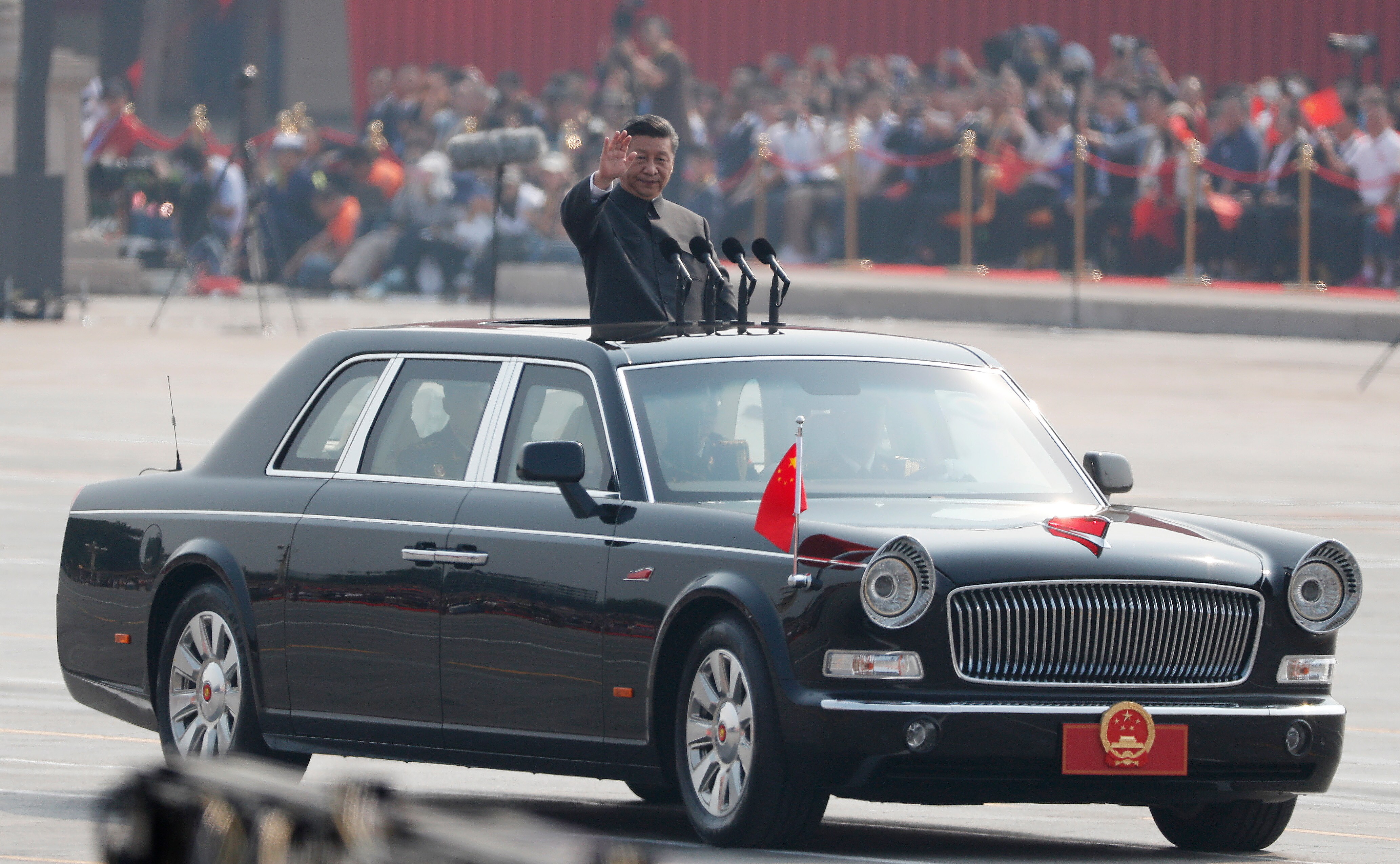 Præsident Xi Jinping kommer her i en åben bilkortege. (Foto: © Wu Hong, Scanpix)