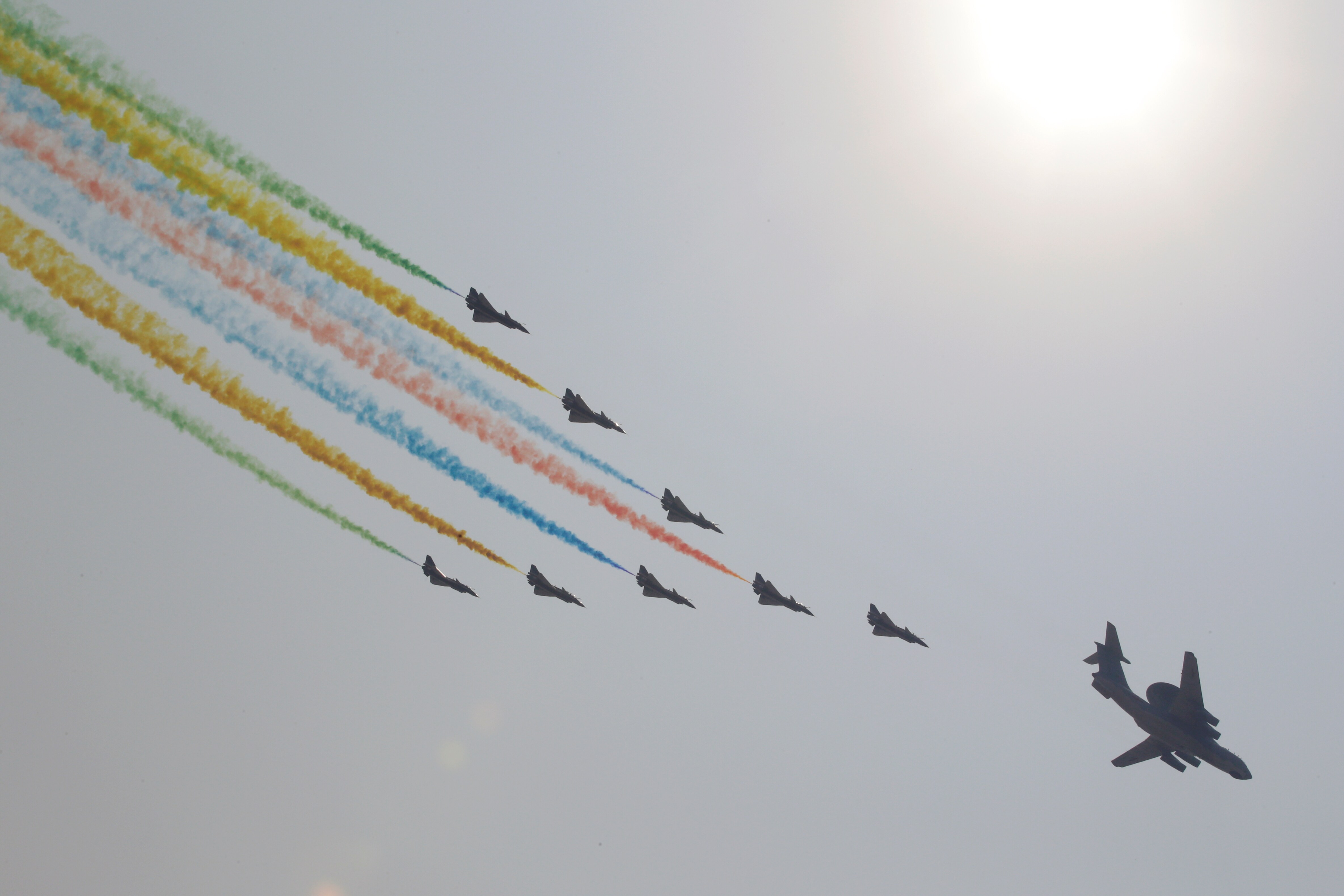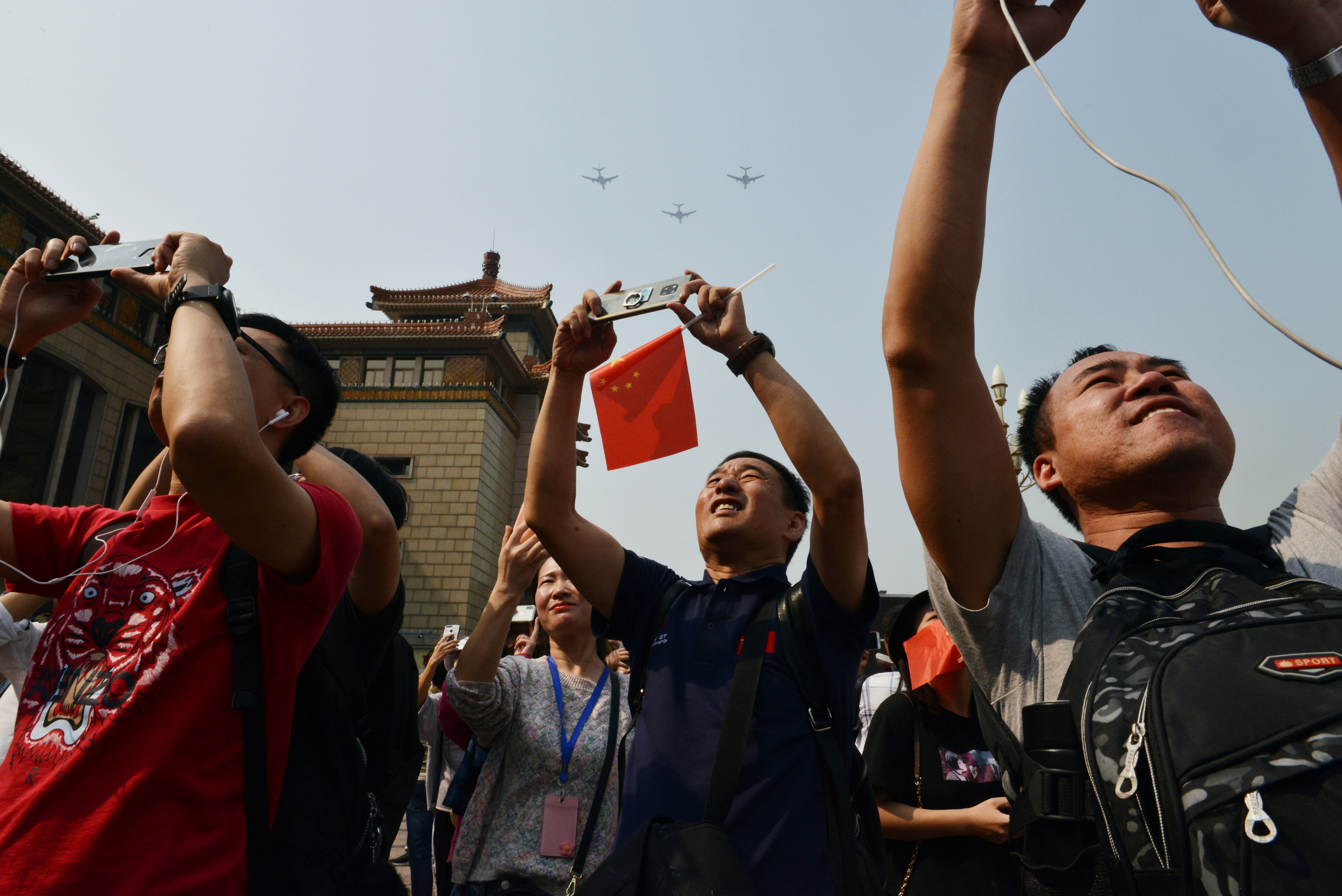 Kinesere kigger på kinesiske kampfly. (Foto: © TINGSHU WANG, Scanpix)