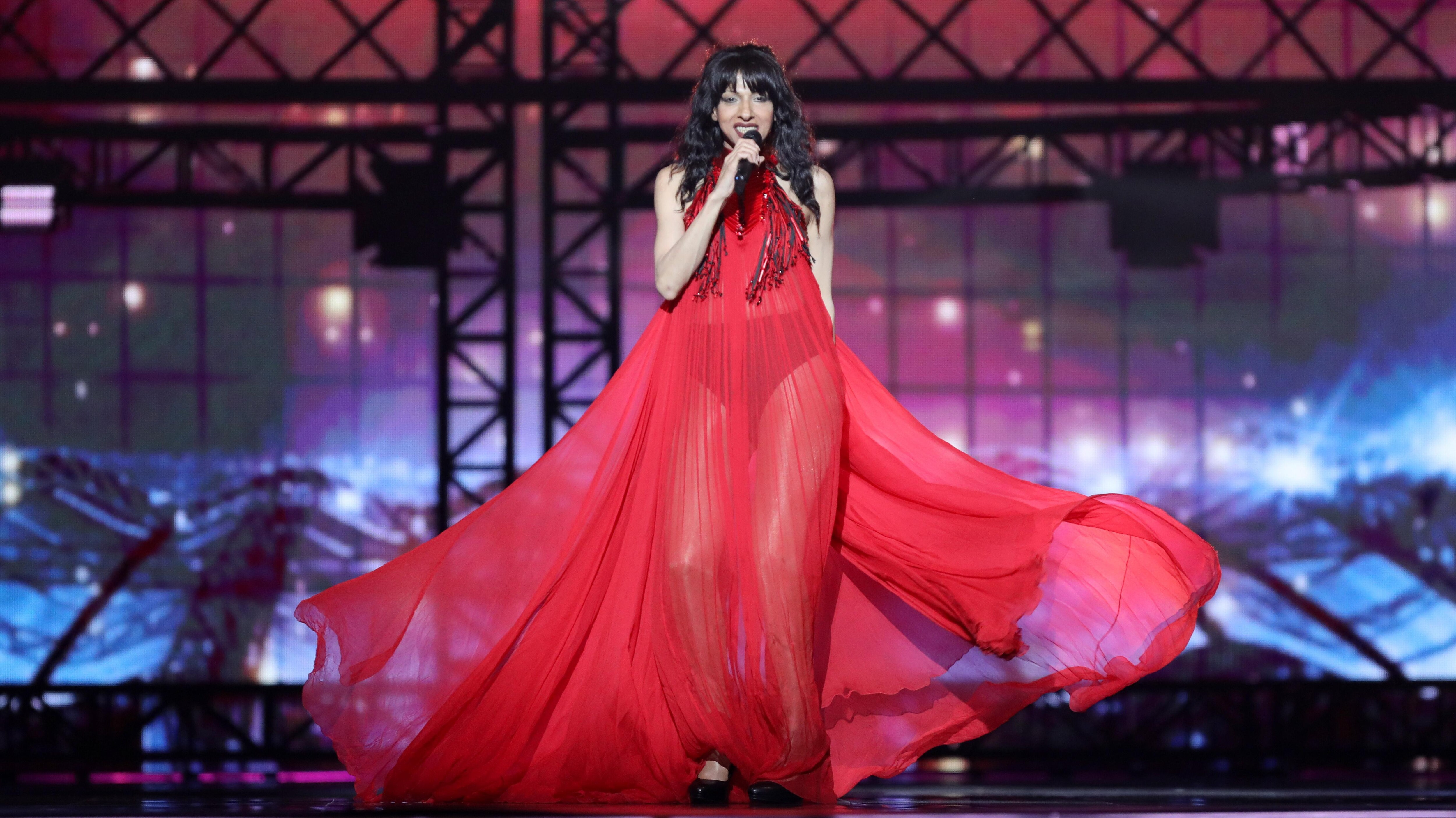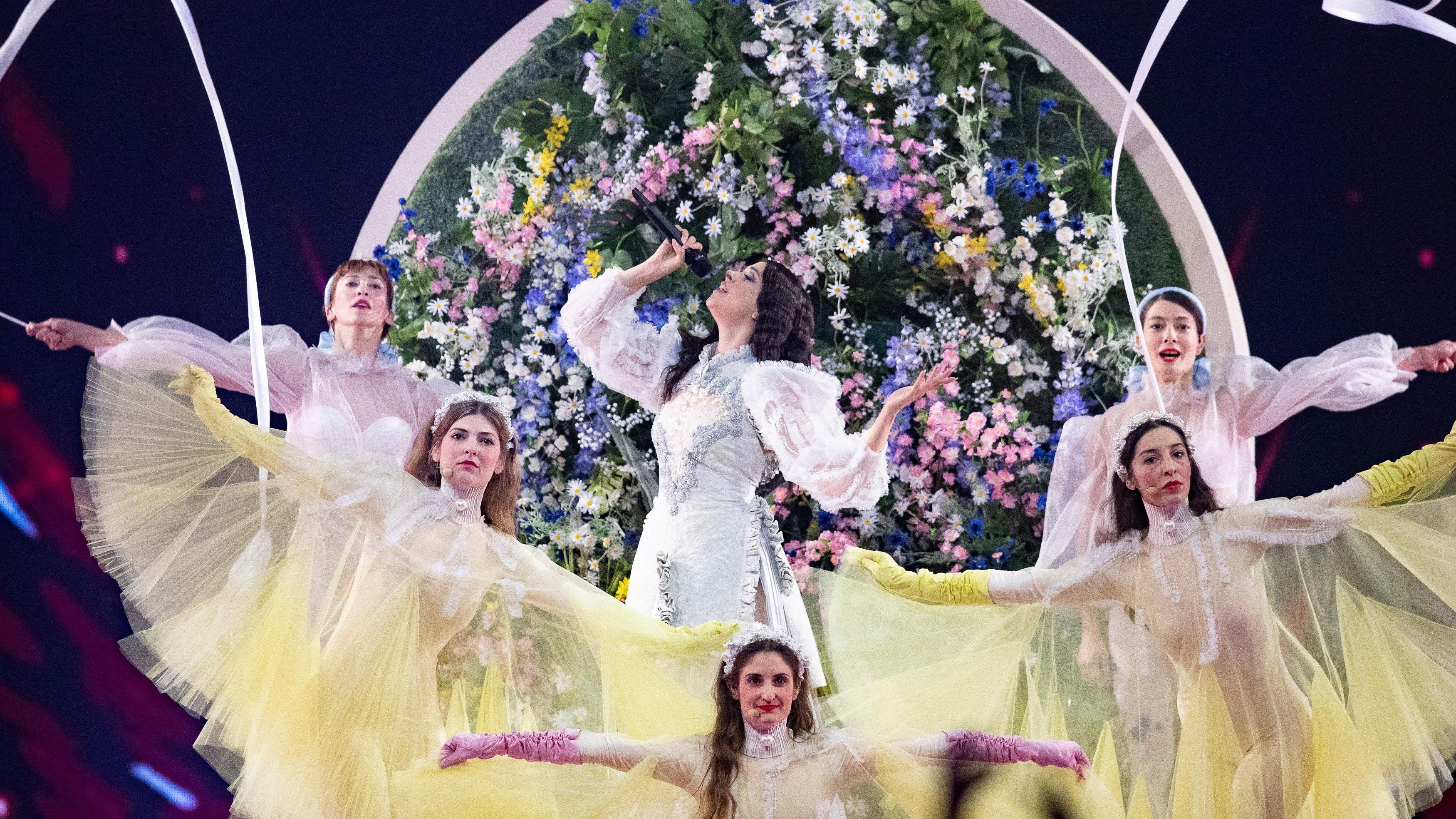 Serbien byder på Balkan-drama med Nevena Bozovic og den storladne ballade 'Kruna'. (Foto: © Thomas Hanses, eurovision.tv)