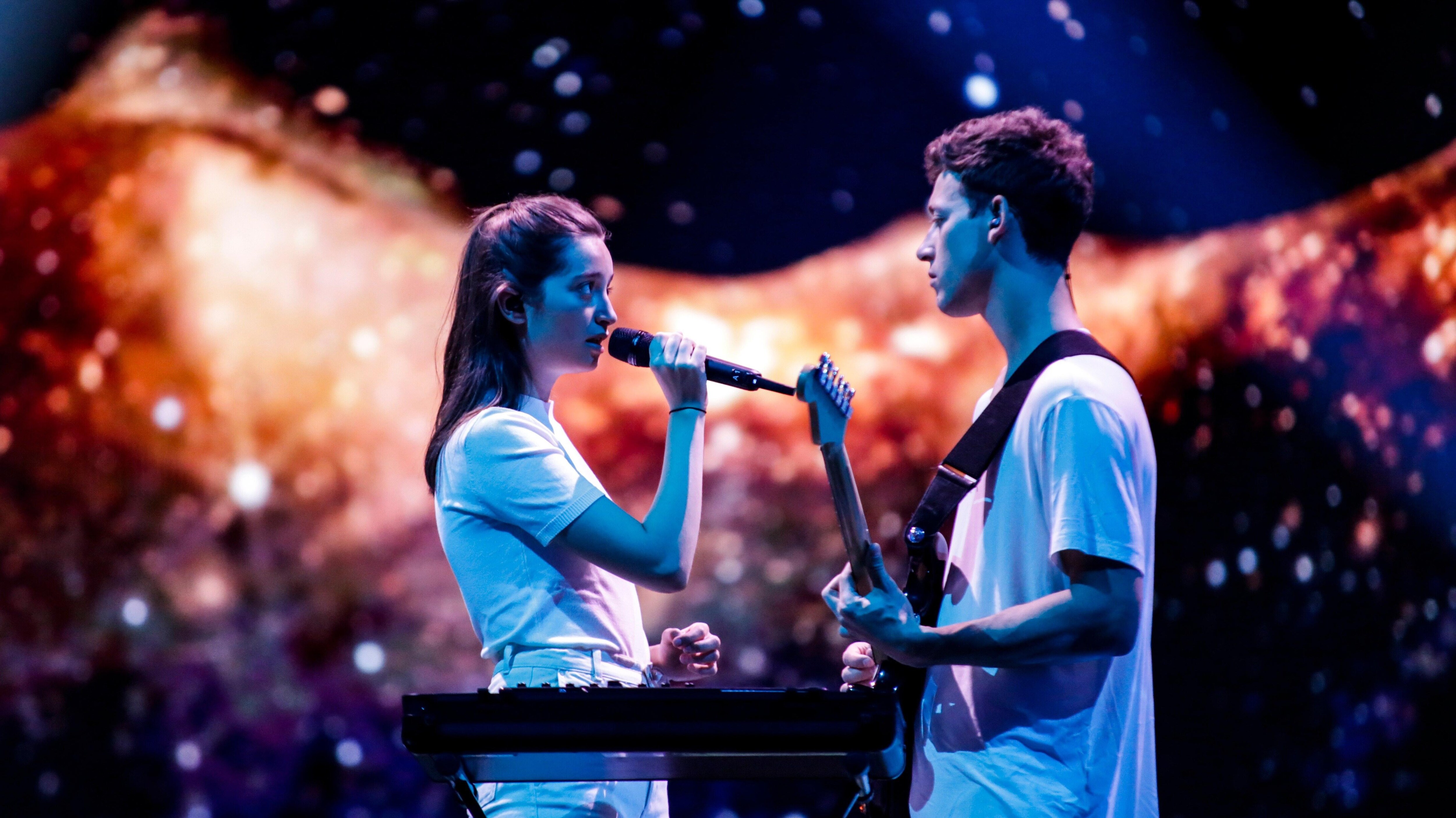 Melankolsk electropop fra Sloveniens Zala Kralj og Gasper Santl med sangen 'Sebi'. (Foto: © Thomas Hanses, eurovision.tv)