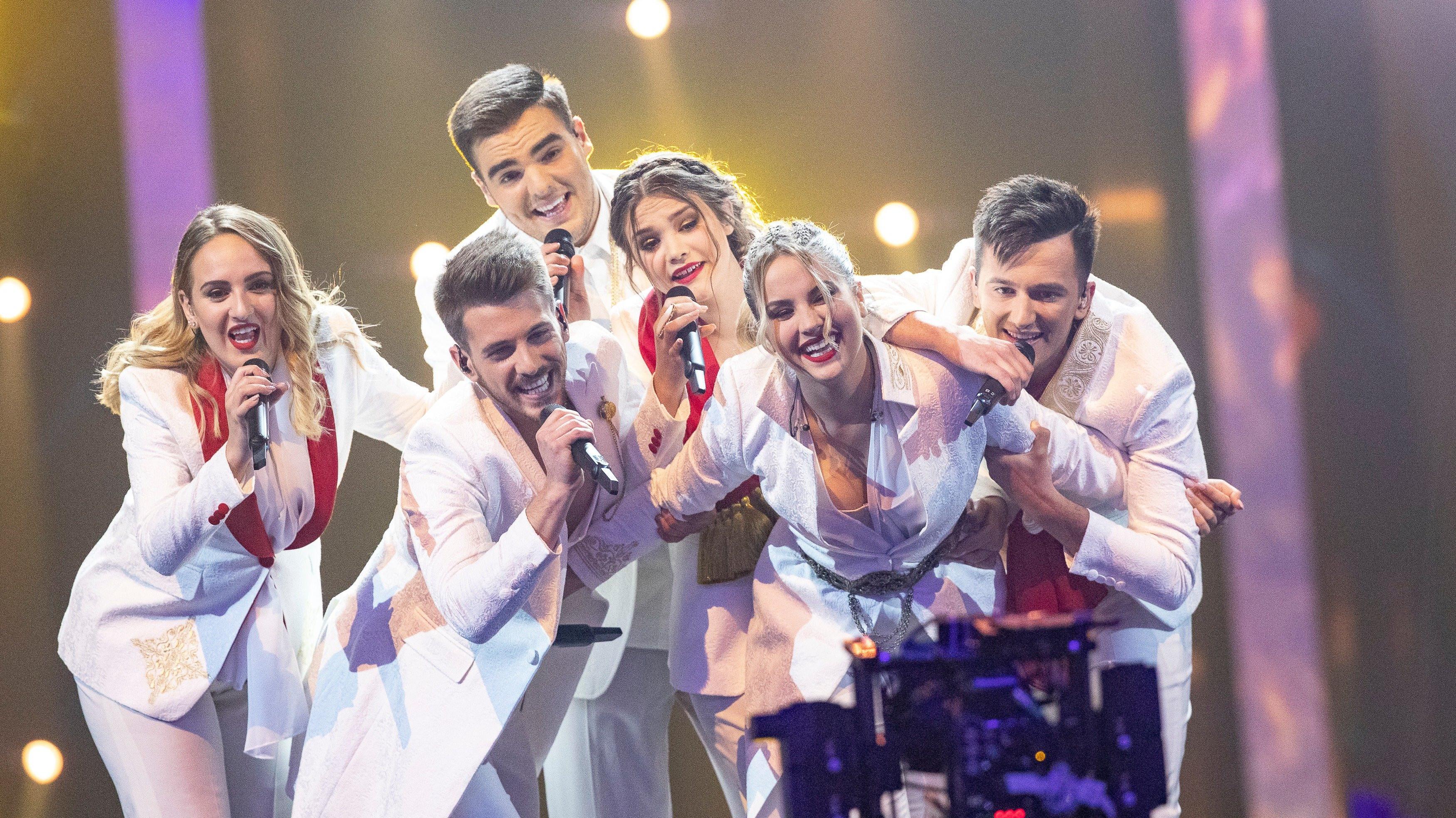 Sang nummer to står Montenegro for. Gruppen hedder D mol, sangen hedder 'Heaven'. (Foto: © Andres Putting, eurovision.tv)