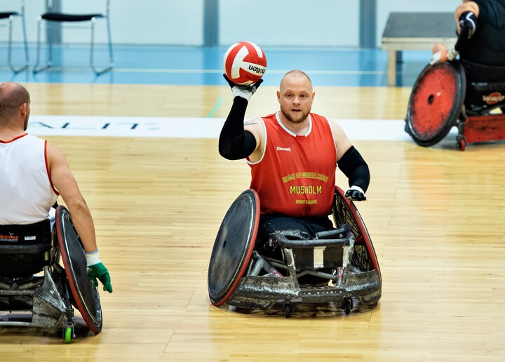 Kørestols-rugby er en holdsport for personer med nedsat funktion i både arme og ben.