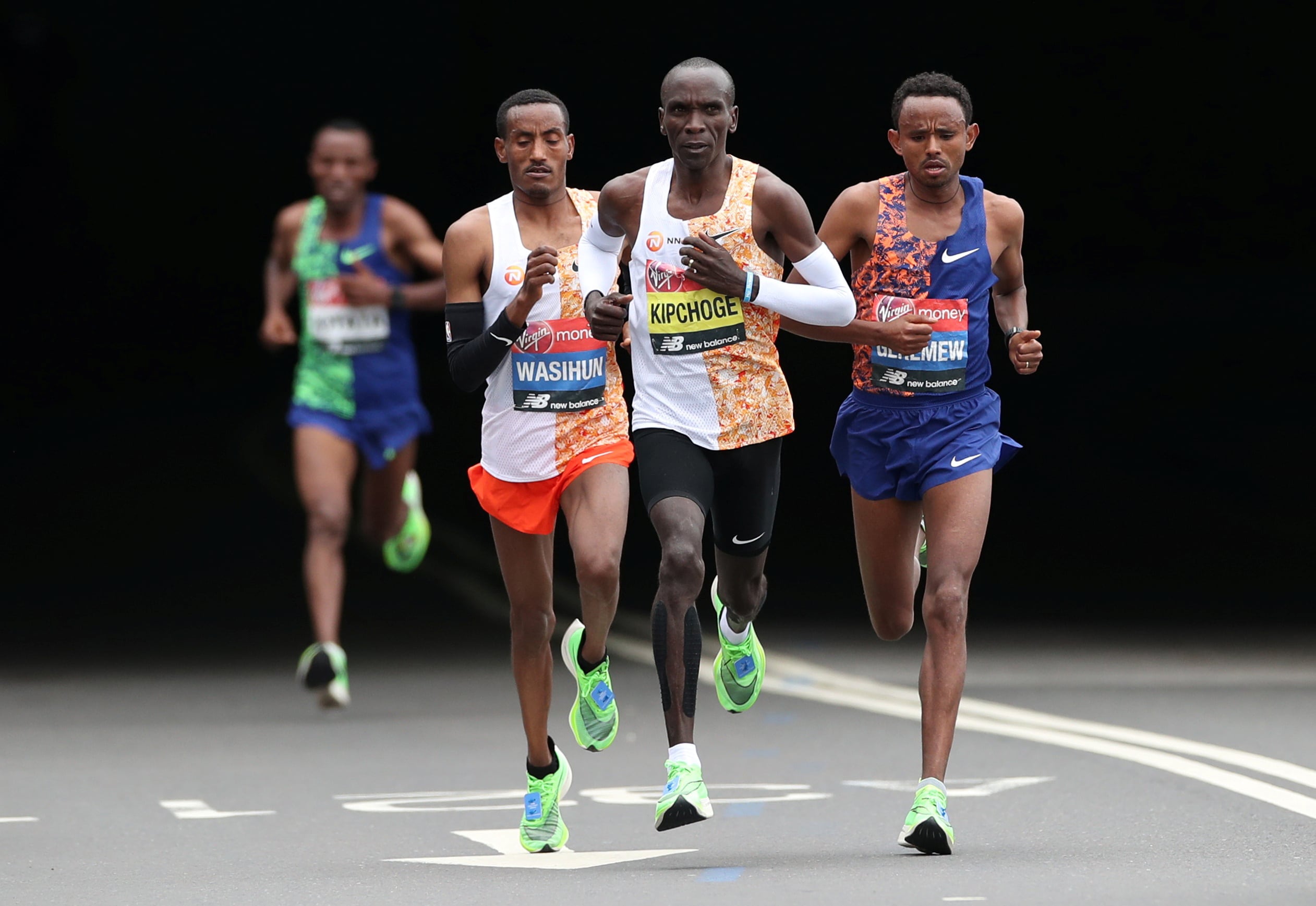 Her vandt 34-årige Eliud Kipchoge fra Kenya herrernes løb. Det er fjerde gang, han vinder maratoni London. Han løb ruten på 2 timer 2 minutter og 37 sekunder.