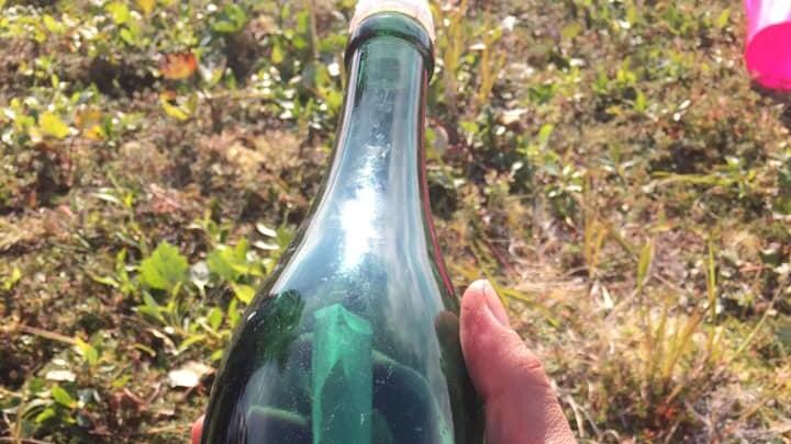 Nedenfor kan du se bileder af flaskeposten og brevet, som lå indeni.