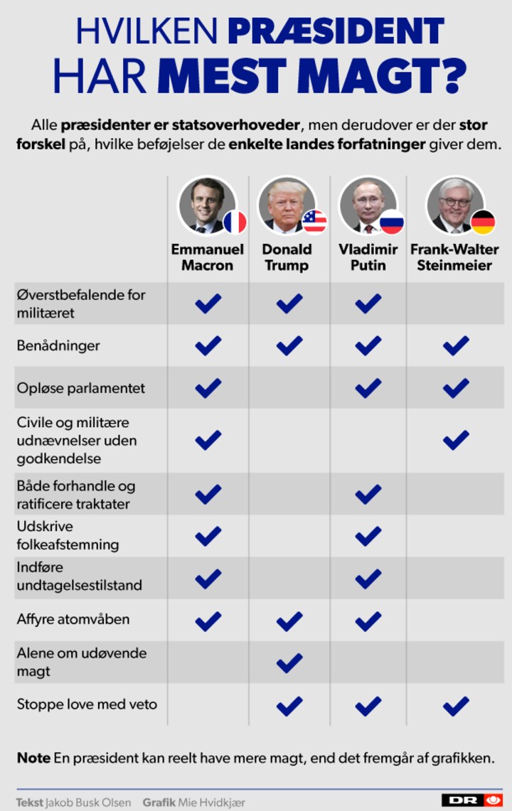 Macron kan for eksempel indføre undtagelsestilstand eller udskrive folkeafstemning - det kan Trump ikke.