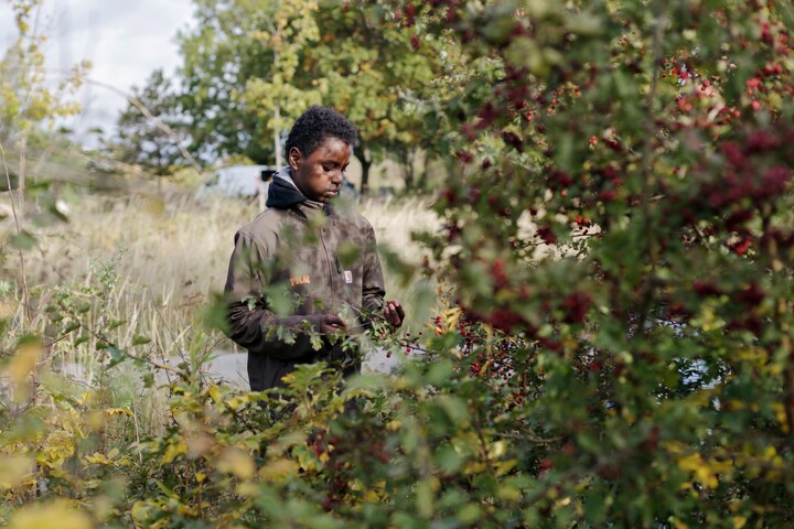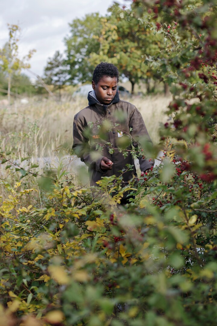 Han samler mad i naturen, som han sammen med en række jævnaldrende tilbereder og serverer for ældre mennesker.