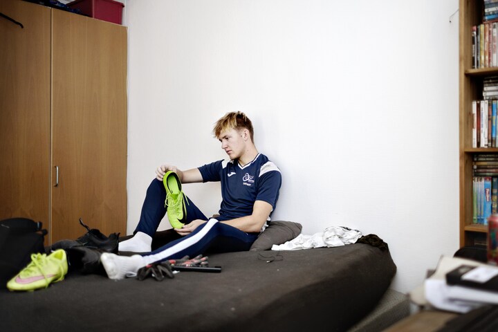 Nogle vil måske synes, at det lyder hårdt. Sådan føler jeg det ikke. Selvfølgelig kan det være lidt mærkeligt at sidde hjemme i weekenden og chille, mens jeg får snaps fra venner, der er i byen. Men jeg begyndte først at spille fodbold, da jeg var 11, så jeg har en del at indhente, for at jeg kan blive professionel fodboldspiller. Men jeg har udviklet mig så meget – og derfor tror jeg på det.