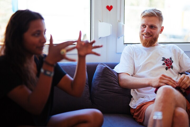 Hos Aske Knudsen viste der sig dog en smule nervøsitet kort før P6 Beat-vært Carsten Holm og P3-vært Pelle Peter Jensen præsenterede Ravi Kumar på Kærligheden.