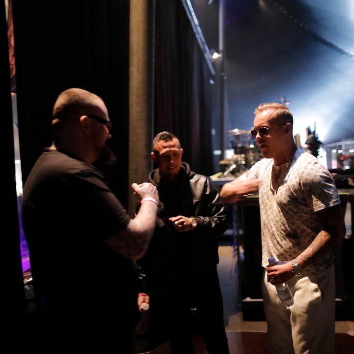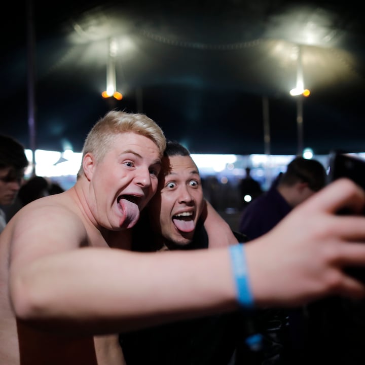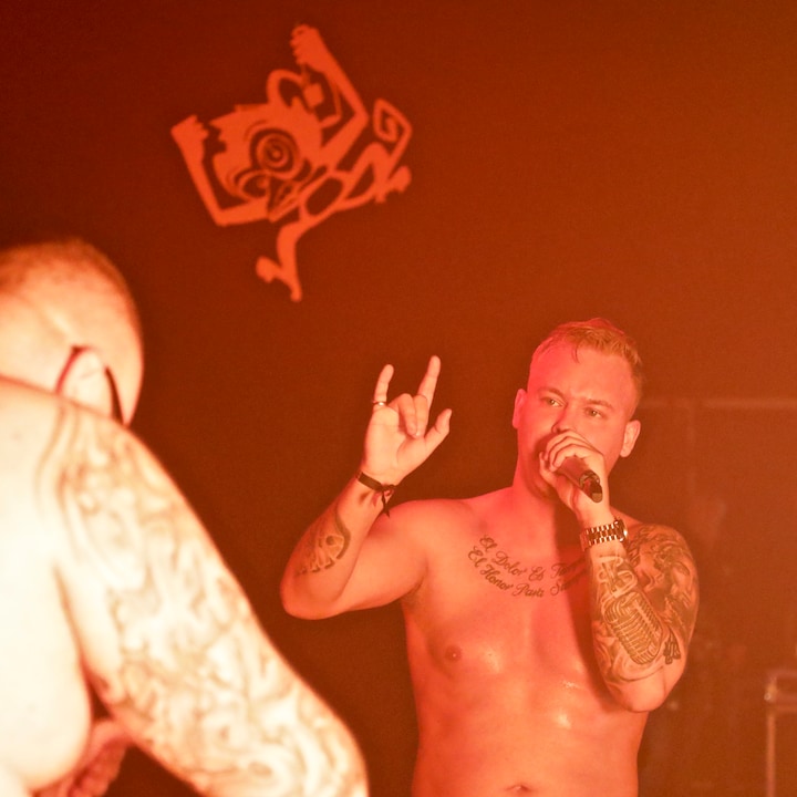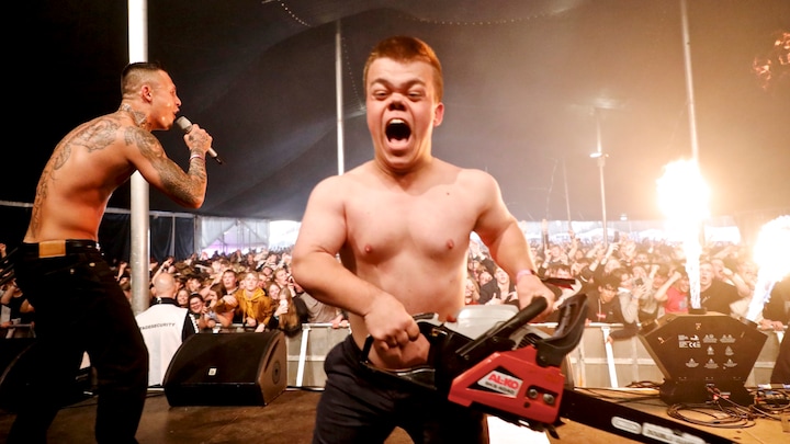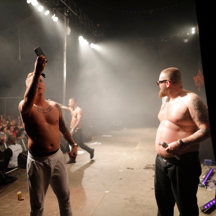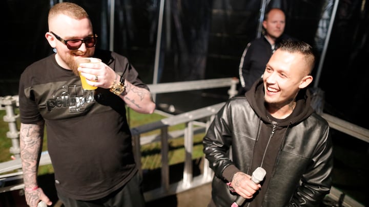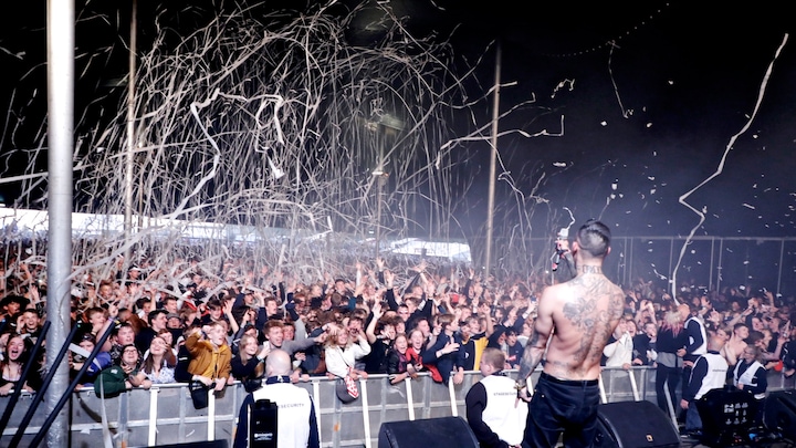 Teltscenen med plads til 5.000 tilskuere er fyldt til bristepunktet denne onsdag aften, og udenfor står flere tusinde festramte festivalgæster og hopper og tramper til hits som 'Jantelov', 'Velsignet', 'Suger coke fra dit røvhul' og 'FuckBoi'.