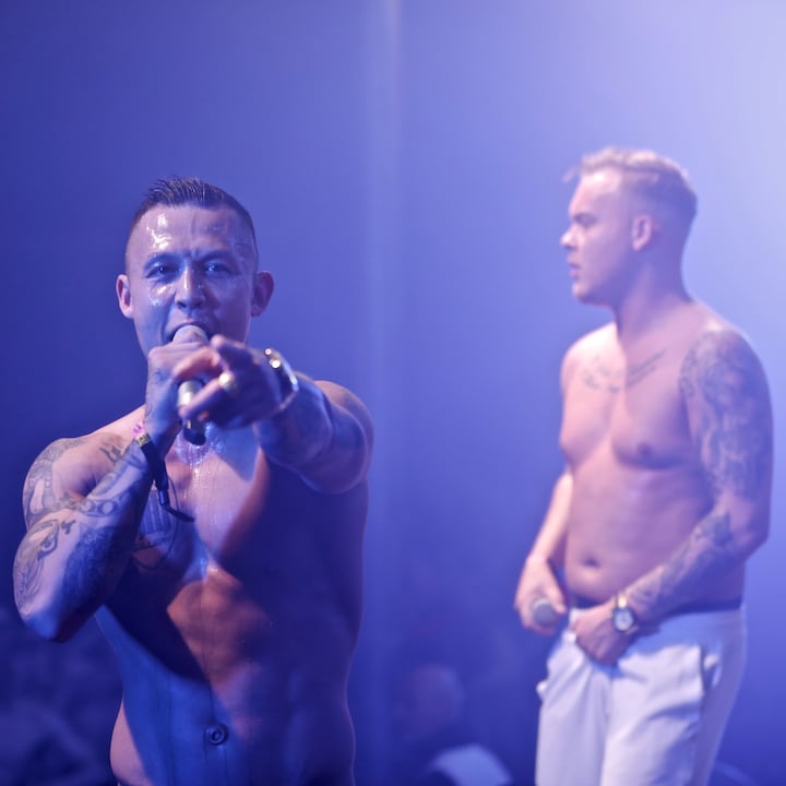 - Nogle hører: 'Coke, coke, coke', men vi er mere end det. Vi har budskaber i vores sange om ikke at give op. Vi går ind for at være os selv og siger: 'Fuck janteloven'. Det er superfedt, når tykke drenge under vores show får mod til at smide T-shirten og gå amok sammen med os. Du må godt tro, du er noget hos os, fortæller Englando.