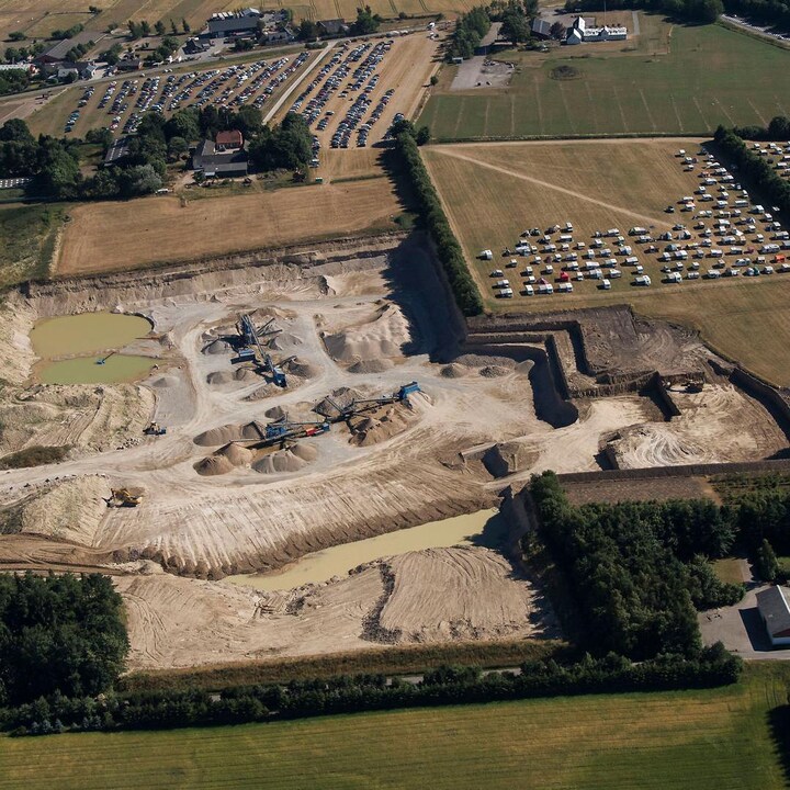 Roskilde Festival med camping og parkering spreder sig nemlig over et område, der er udlagt til indvinding af råstoffer, og inden længe bliver de første områder omdannet til store jordhuller.